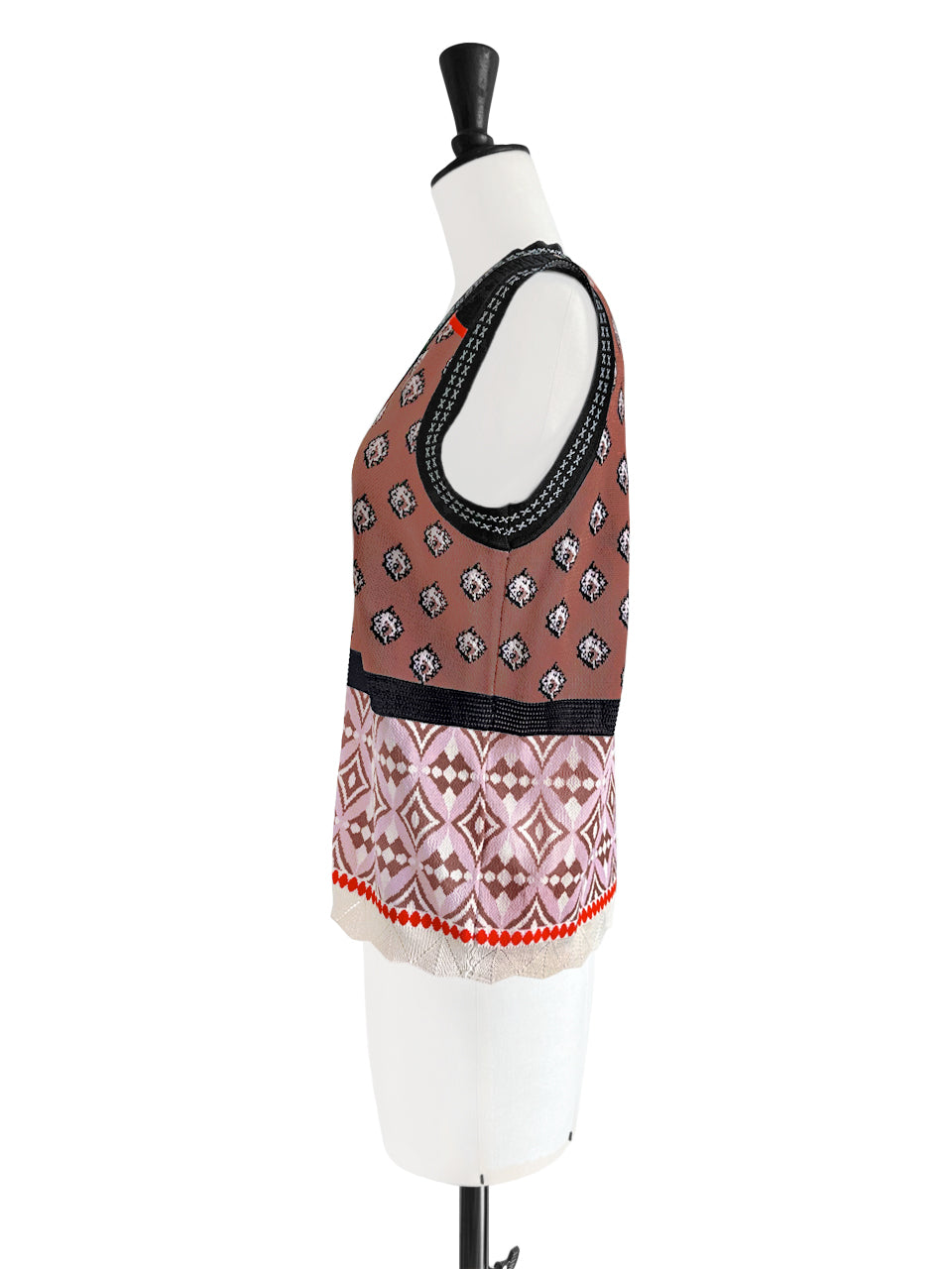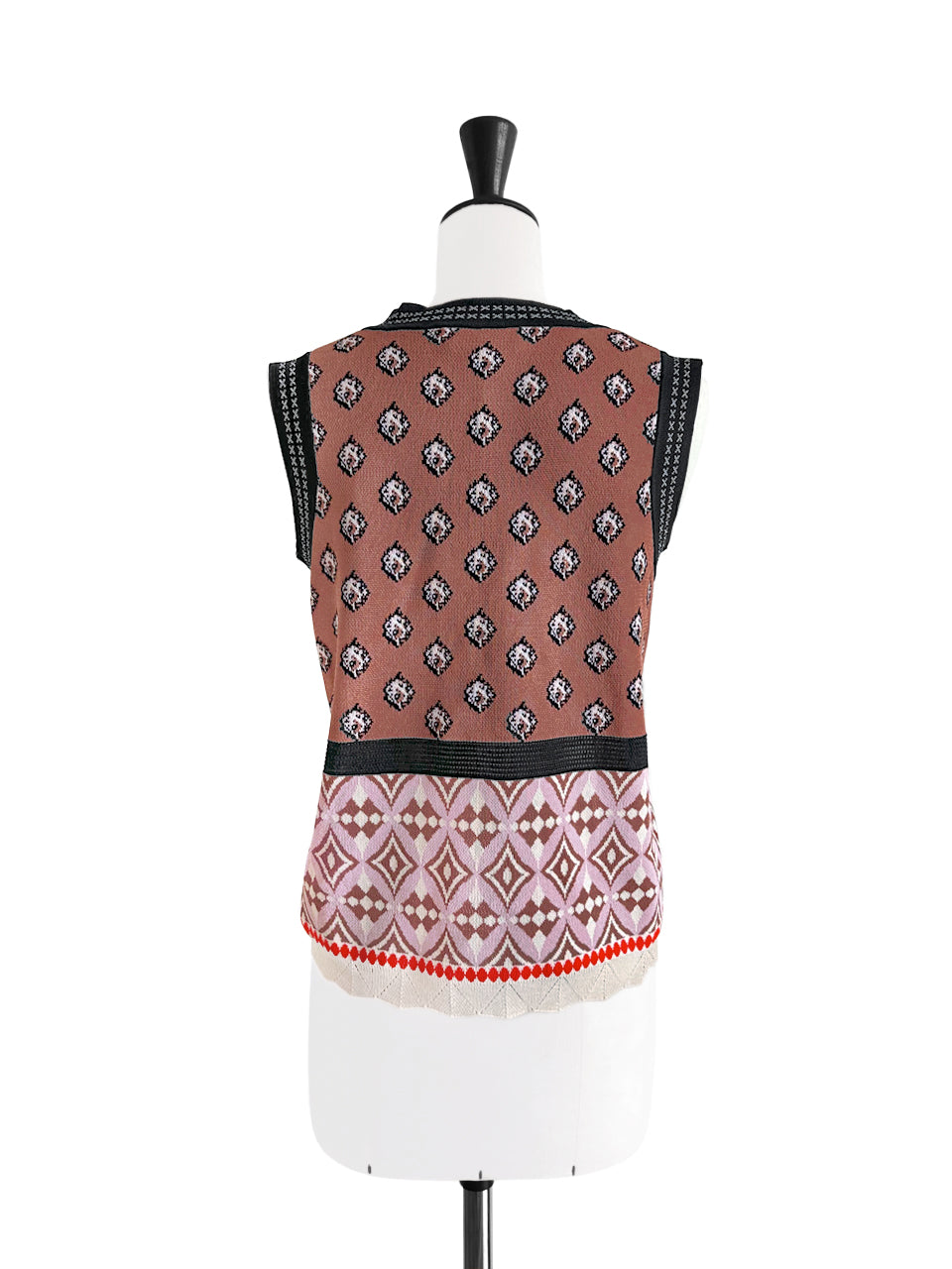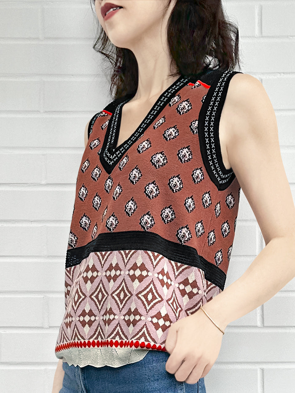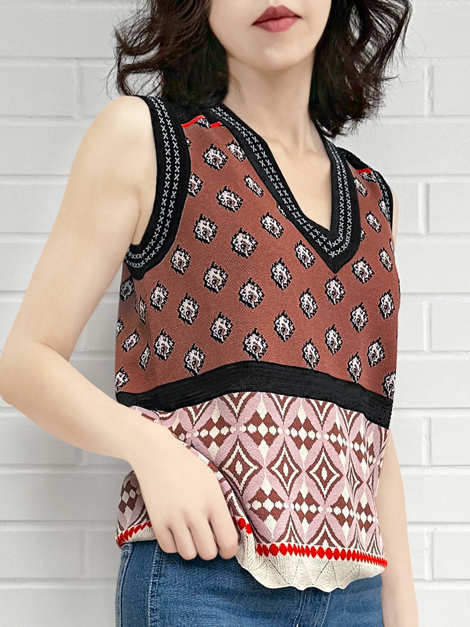 Final Sale! Chestnut Mosaic Pattern Knitted Sleeveless V-neck Sweater