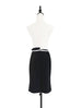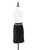 Fitted through waist, hip and thigh; two side pockets, knee length