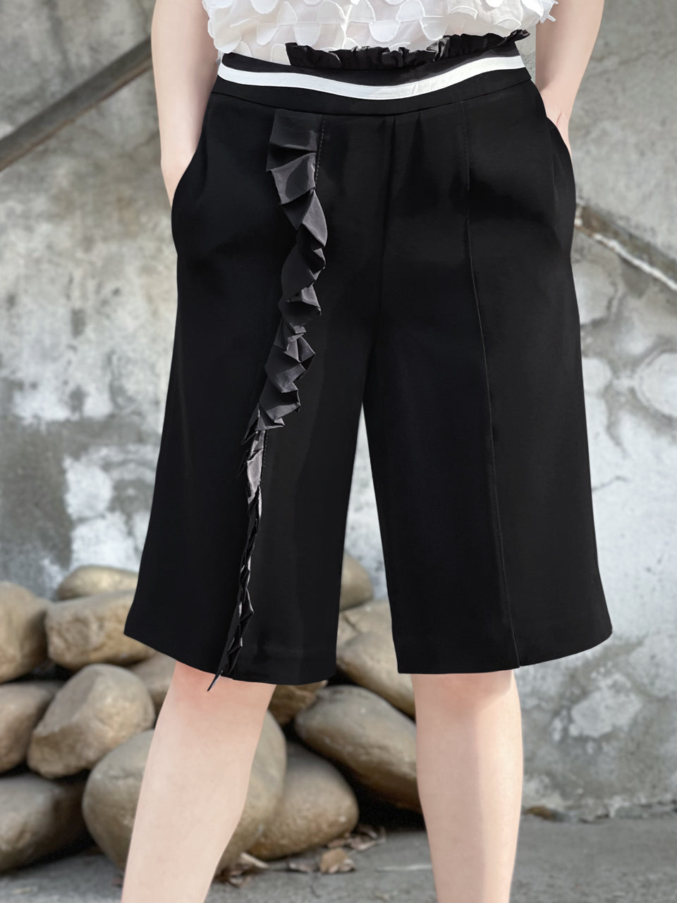 Surprise Sale! Classic Black High Waisted Tailor Ruffle Shorts