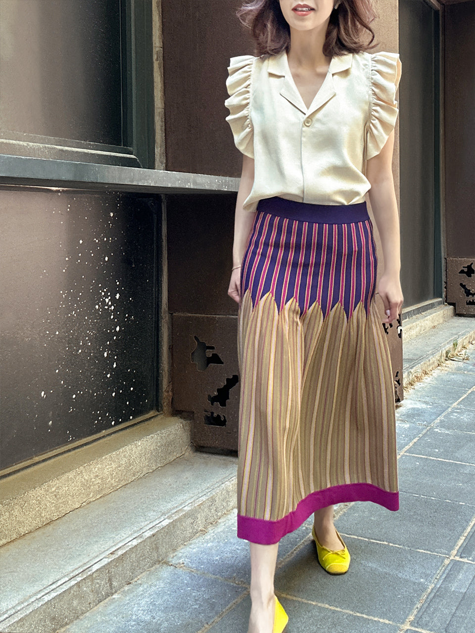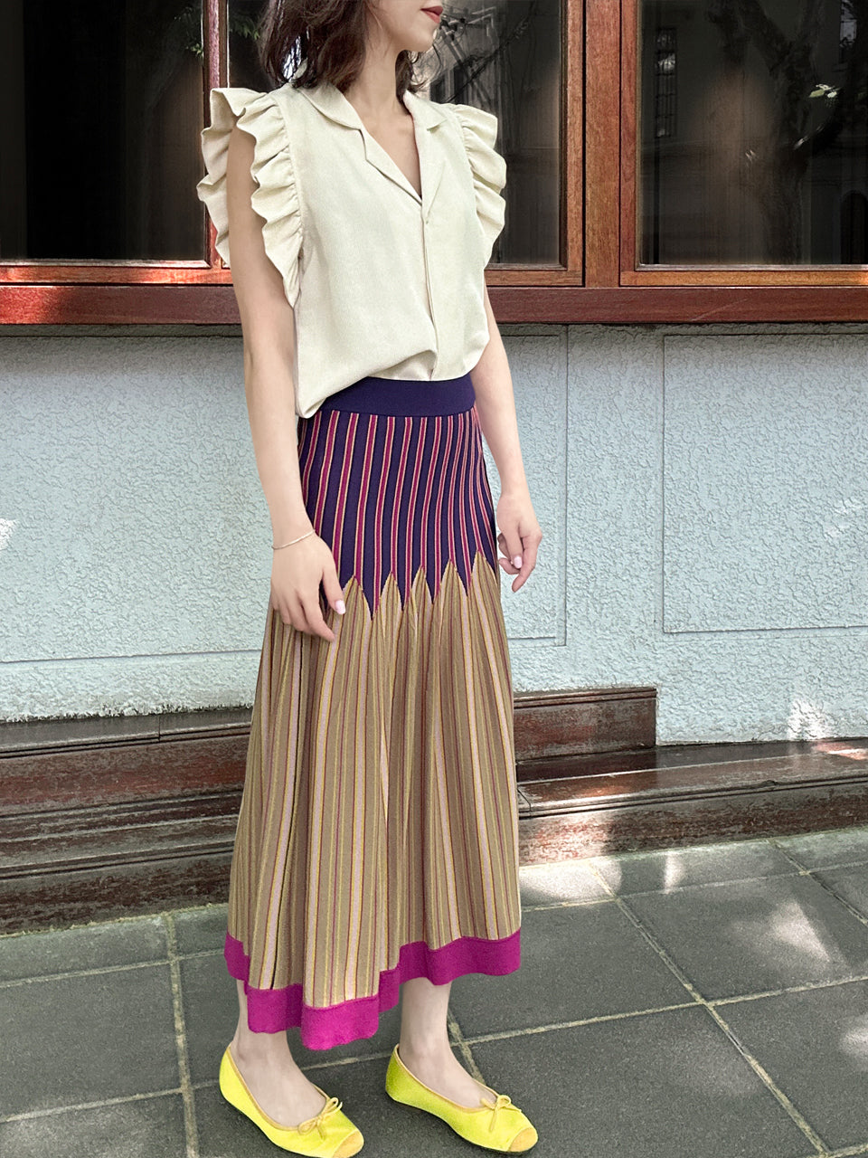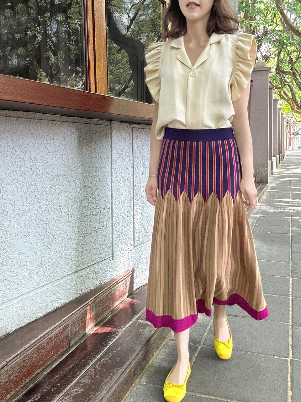 Welcome our very first pattern knitted skirt!! Crafted with care and artistry, this skirt features a vibrant vertical stripe pattern that's sure to turn heads. Designed to sit perfectly on the waist, it effortlessly lengthens your legs and adds a romantic touch to any outfit. Embrace the season in style with this must-have piece that promises to make every day feel like a summer adventure.