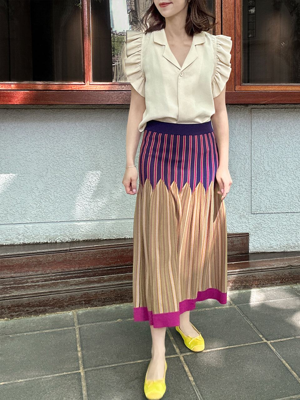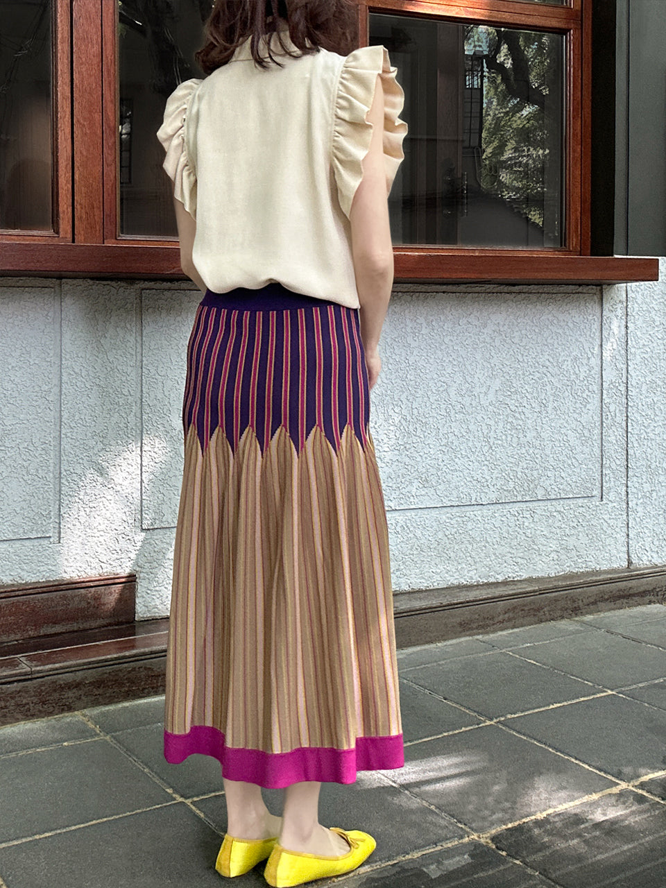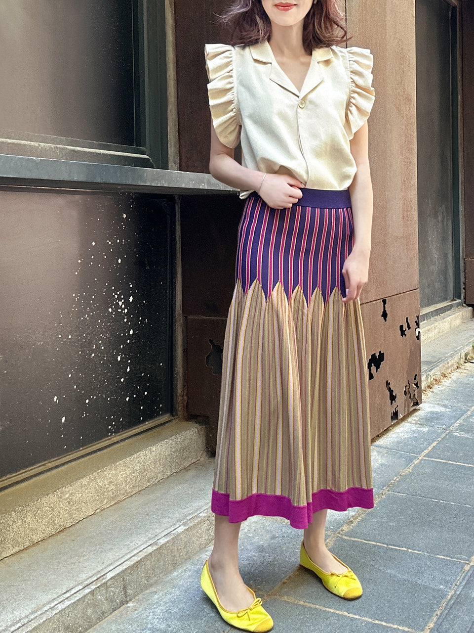 Welcome our very first pattern knitted skirt!! Crafted with care and artistry, this skirt features a vibrant vertical stripe pattern that's sure to turn heads. Designed to sit perfectly on the waist, it effortlessly lengthens your legs and adds a romantic touch to any outfit. Embrace the season in style with this must-have piece that promises to make every day feel like a summer adventure.