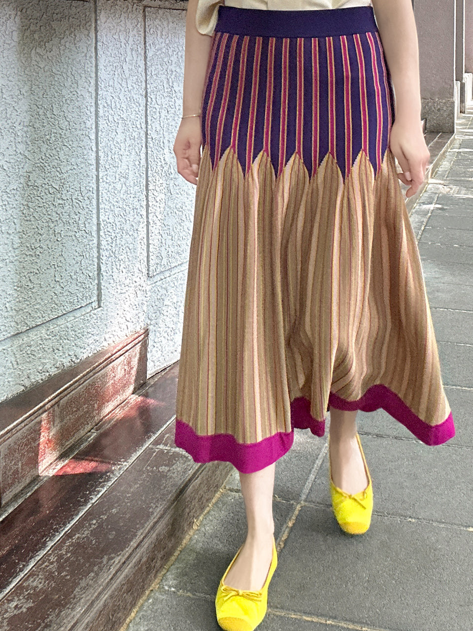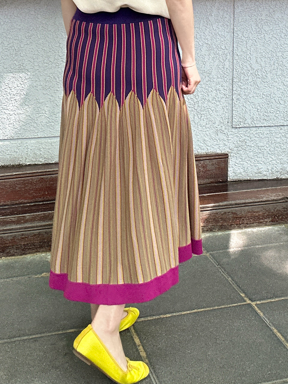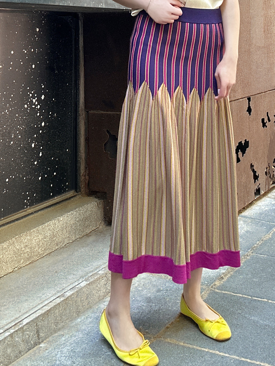 Surprise Sale! Colourful Stripes Summer Knit Fit & Flare Midi Skirt