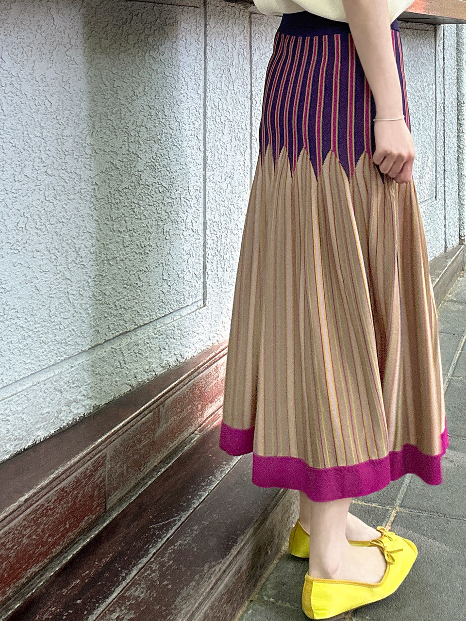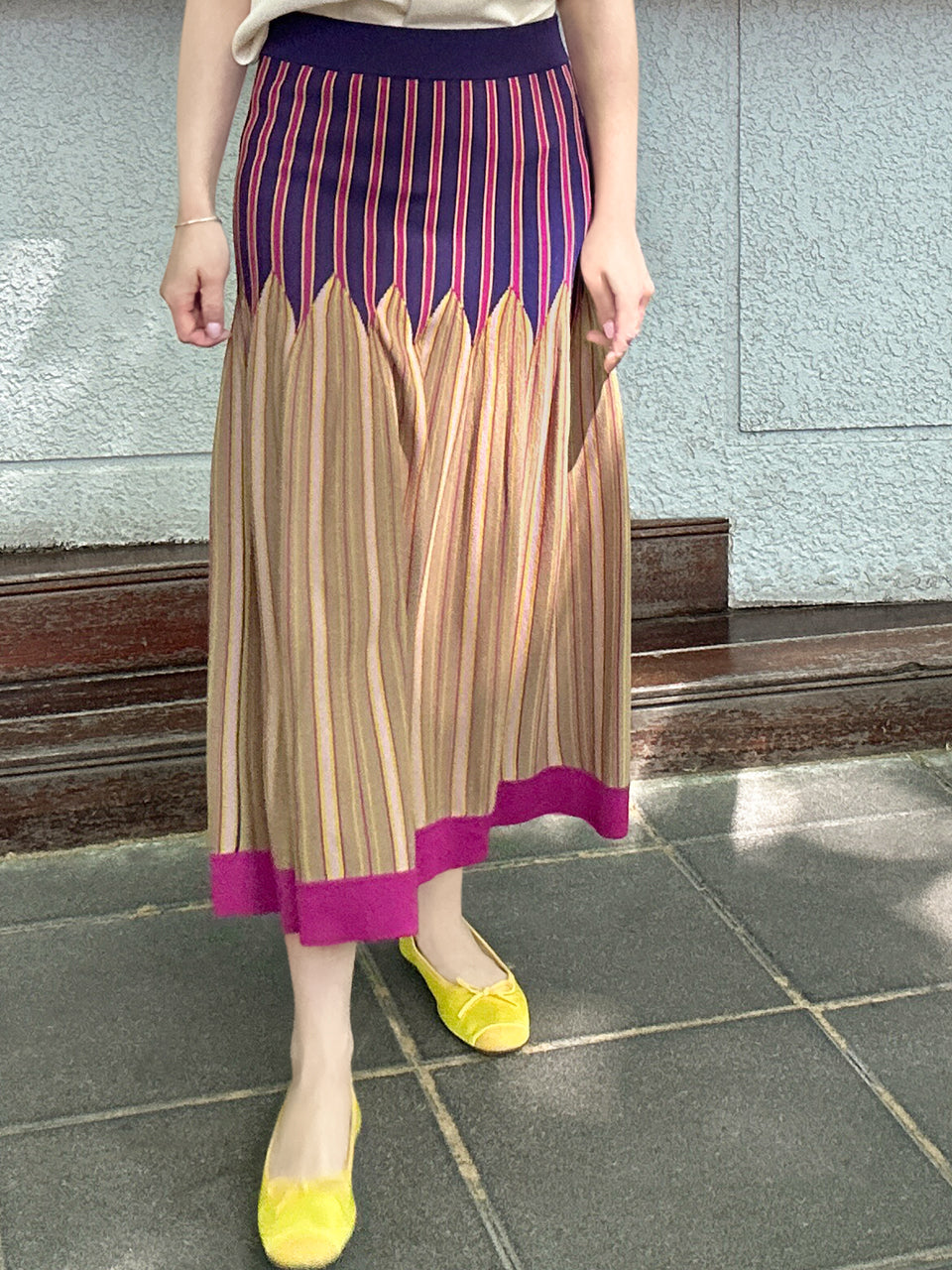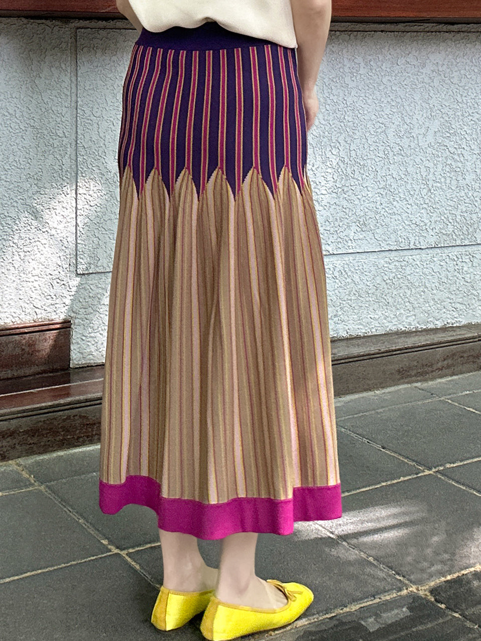 Surprise Sale! Colourful Stripes Summer Knit Fit & Flare Midi Skirt