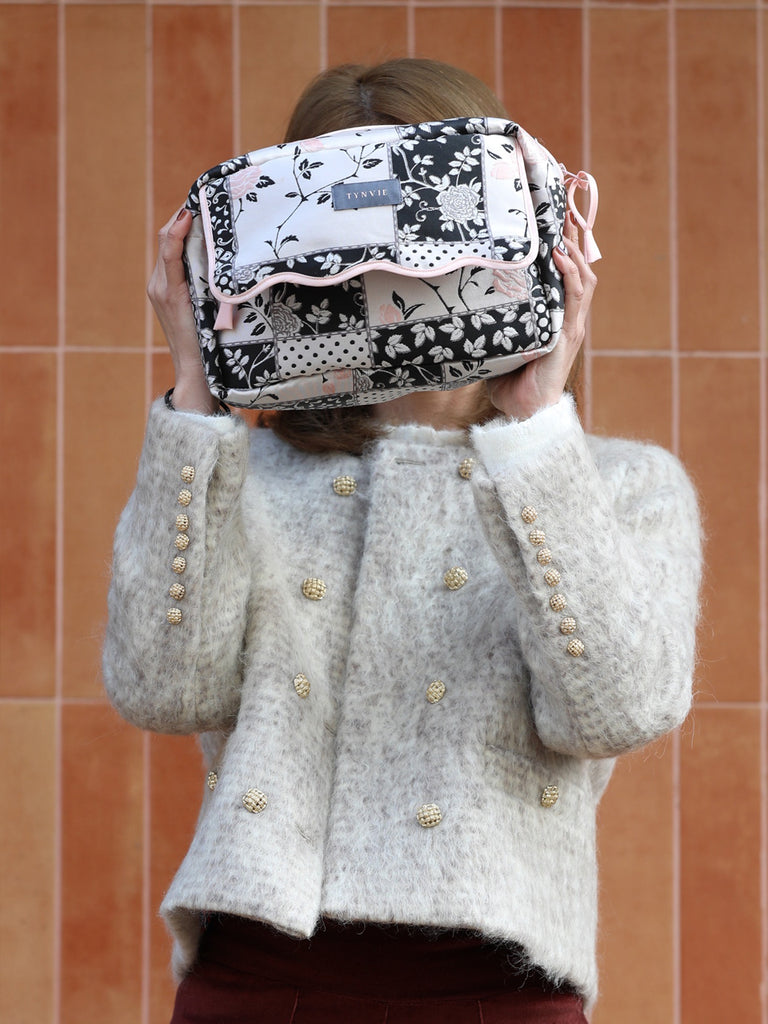 This coordinated pouch and scrunchie set brings bold contrast and fresh energy to your everyday routine. Featuring a structured boxy pouch with a playful knotted bow and a matching scrunchie with trailing ties—perfect for gifting or brightening up your day-to-day essentials.