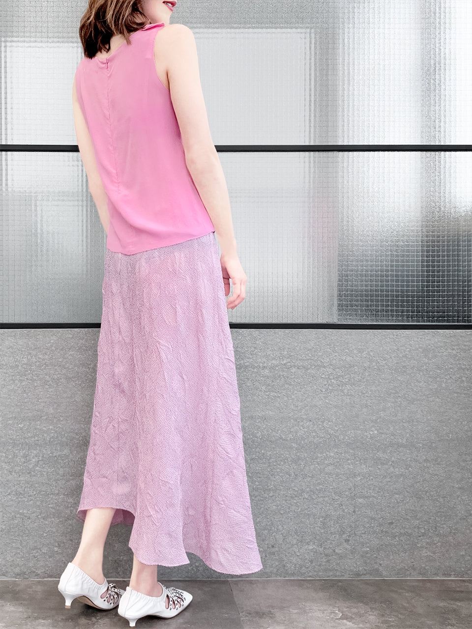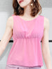 Pinky-Day! Pink Stitched Trim Empire Waist Silk Tank