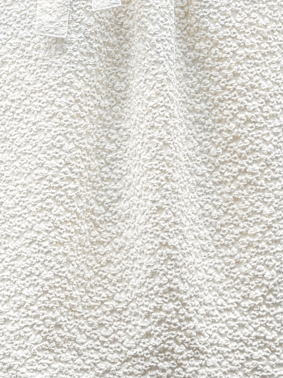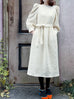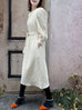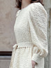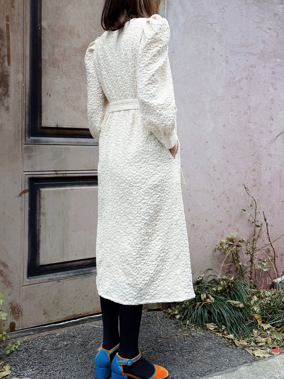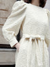 Surprise Sale! Ecru Jacquard Sash Tie Puff-Sleeve Elegant Midi Dress