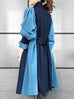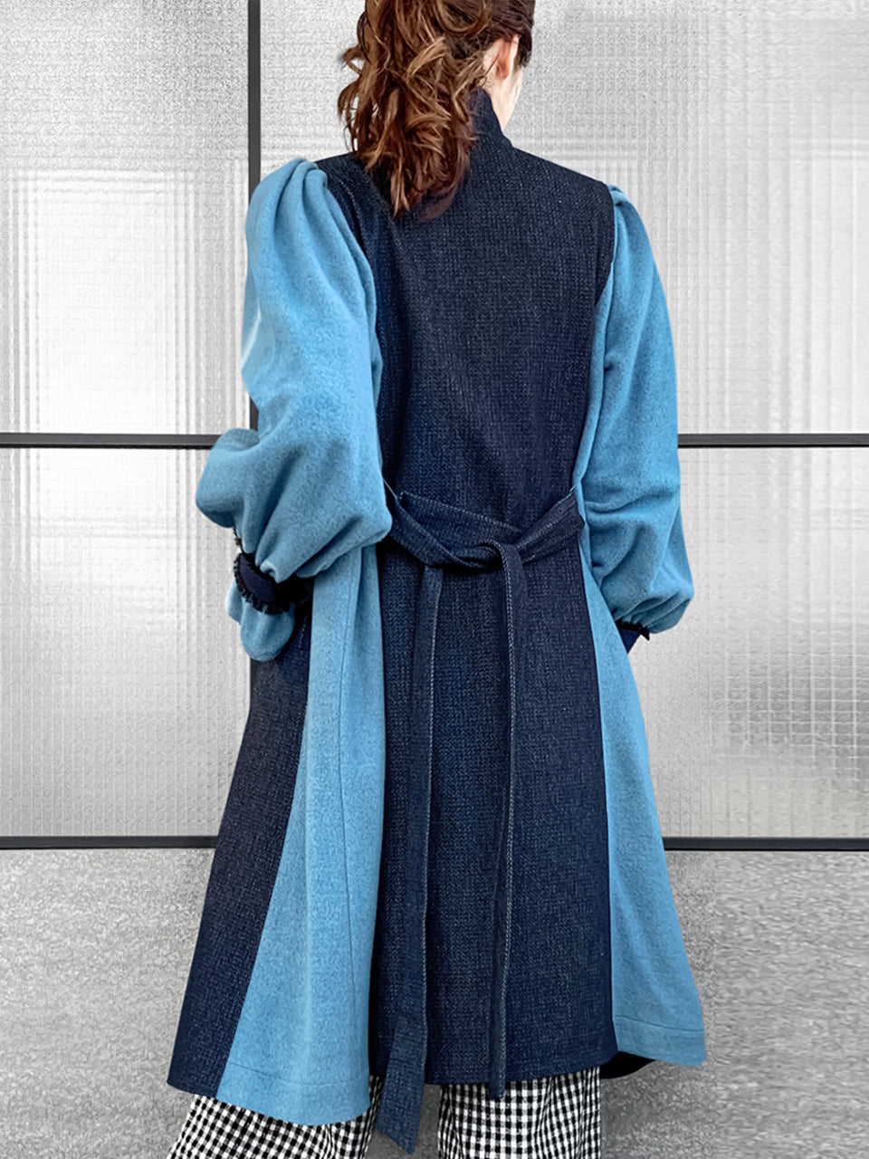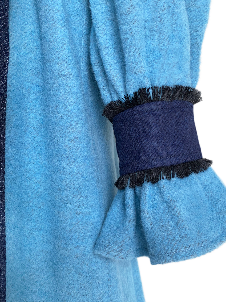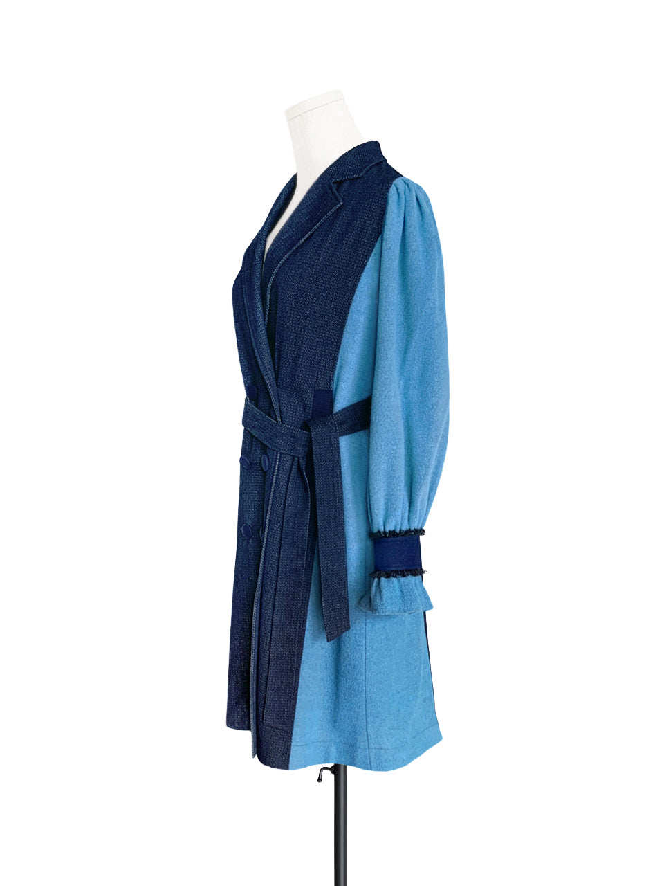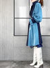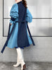 Surprise Sale! Dark Denim Contrast Furry Balloon Sleeves Trench Coat