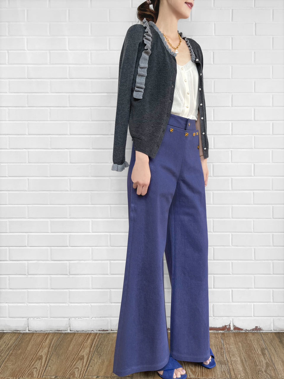 Our signature pearly buttons and a color-blocked ruffles design add feminine style to this classic cardigan knit from luxe cashmere and wool. Perfect for layering, this wool-and-cashmere cardigan polished with an eye-catching contrast ruffle trim at the front is also a standout piece on its own. Contrasting ruffle cuffs add some feminine frill to this classic elegant cardigan that's soft, cozy, and sure to be in heavy rotation all season long