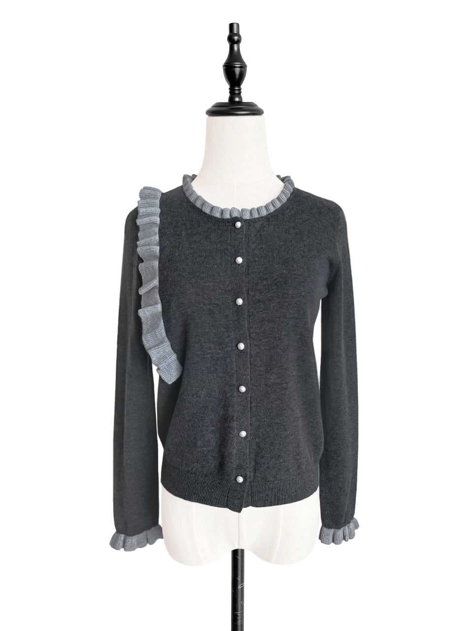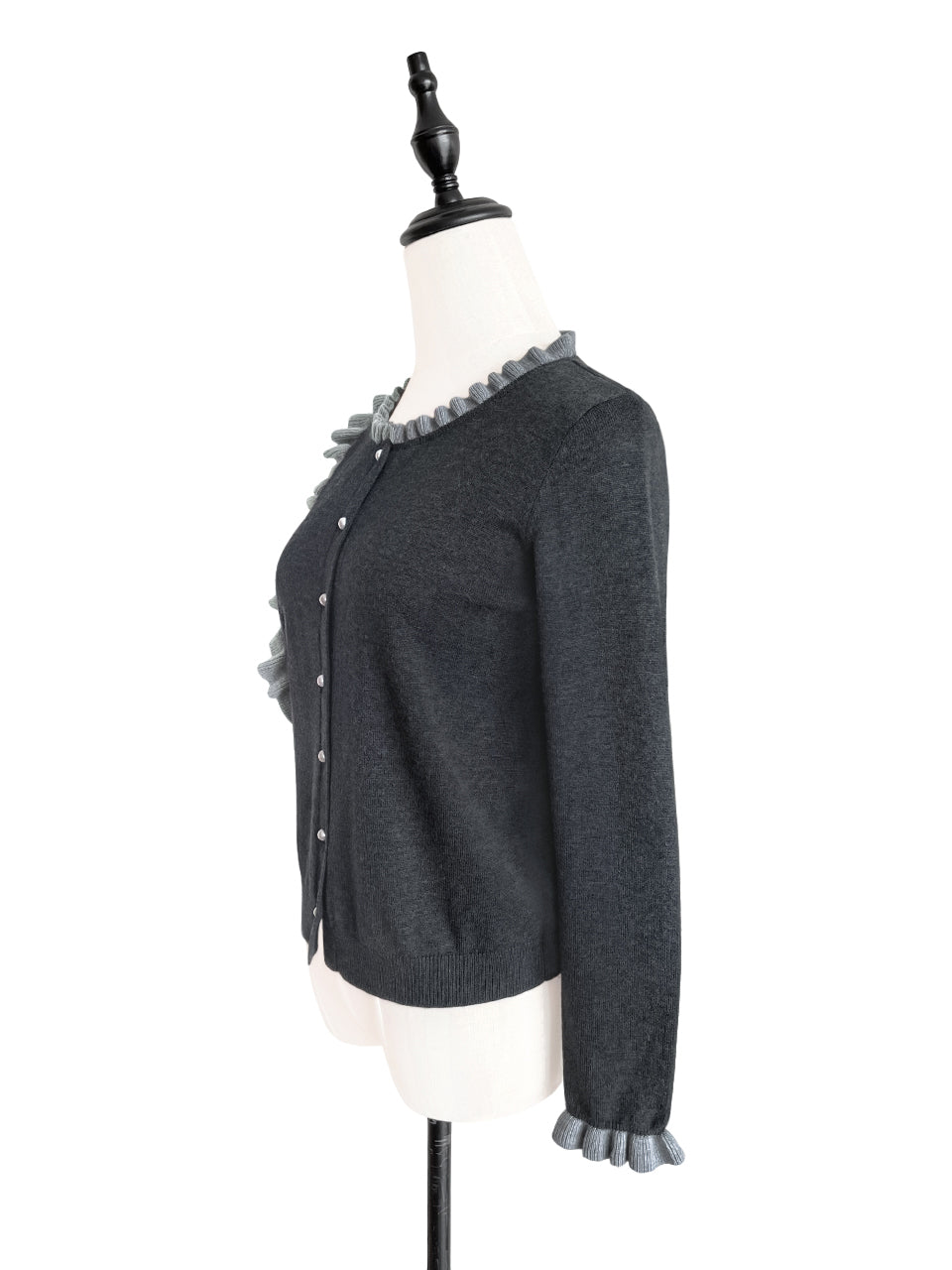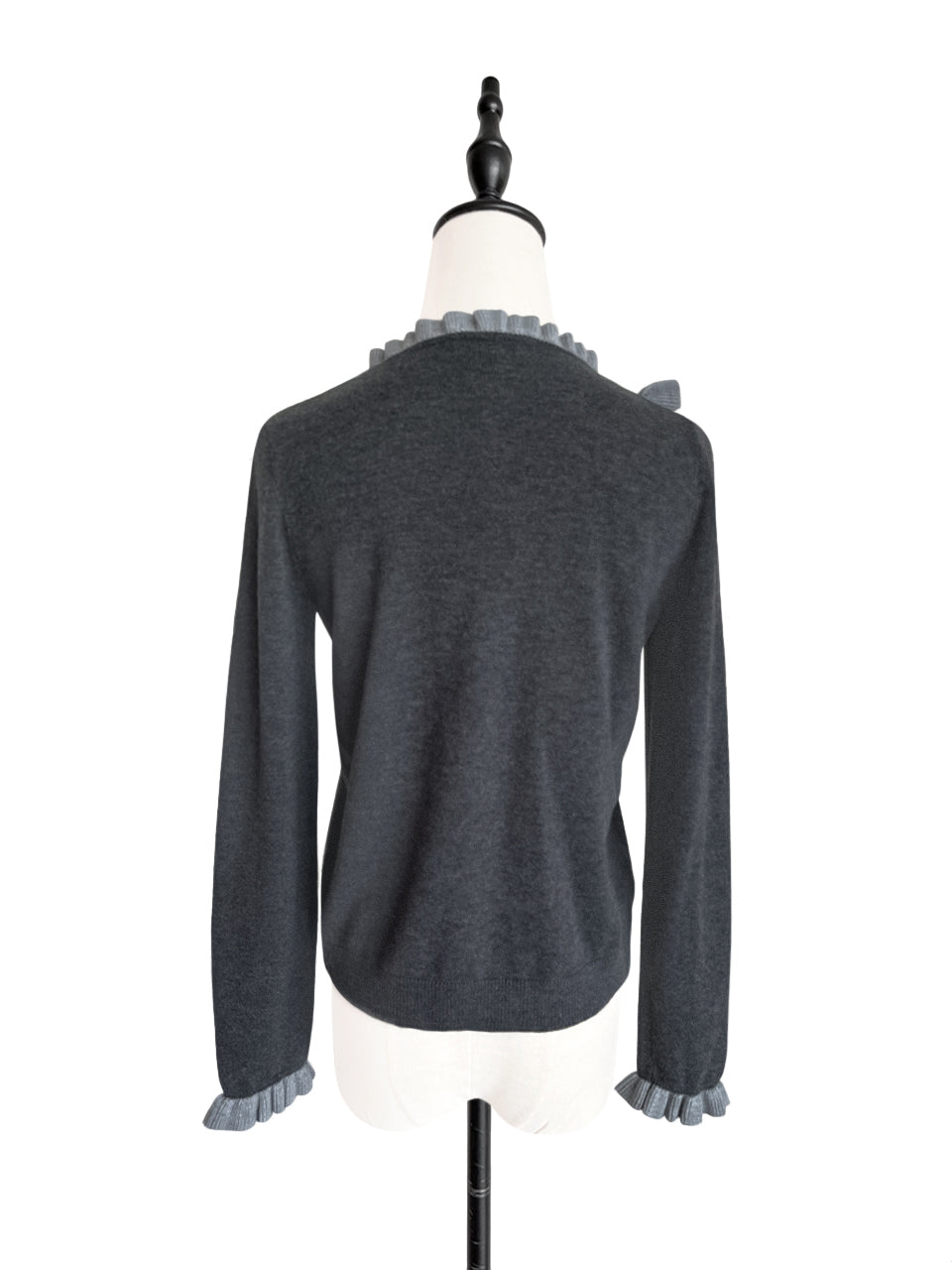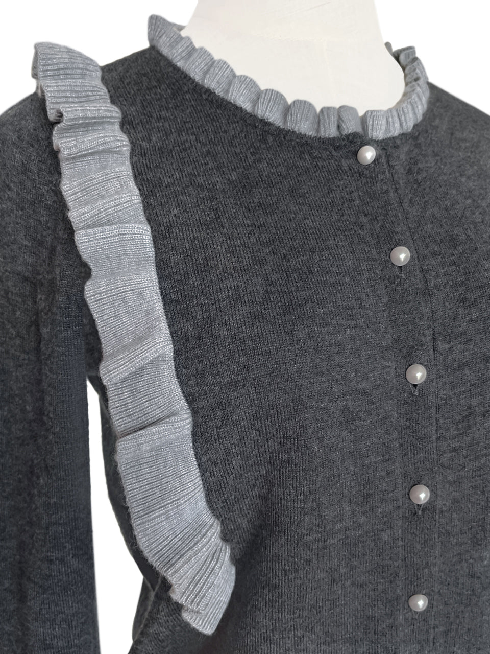 Final Sale! Dark/ Light Grey Contrast Ruffle Cashmere & Wool Cardigan