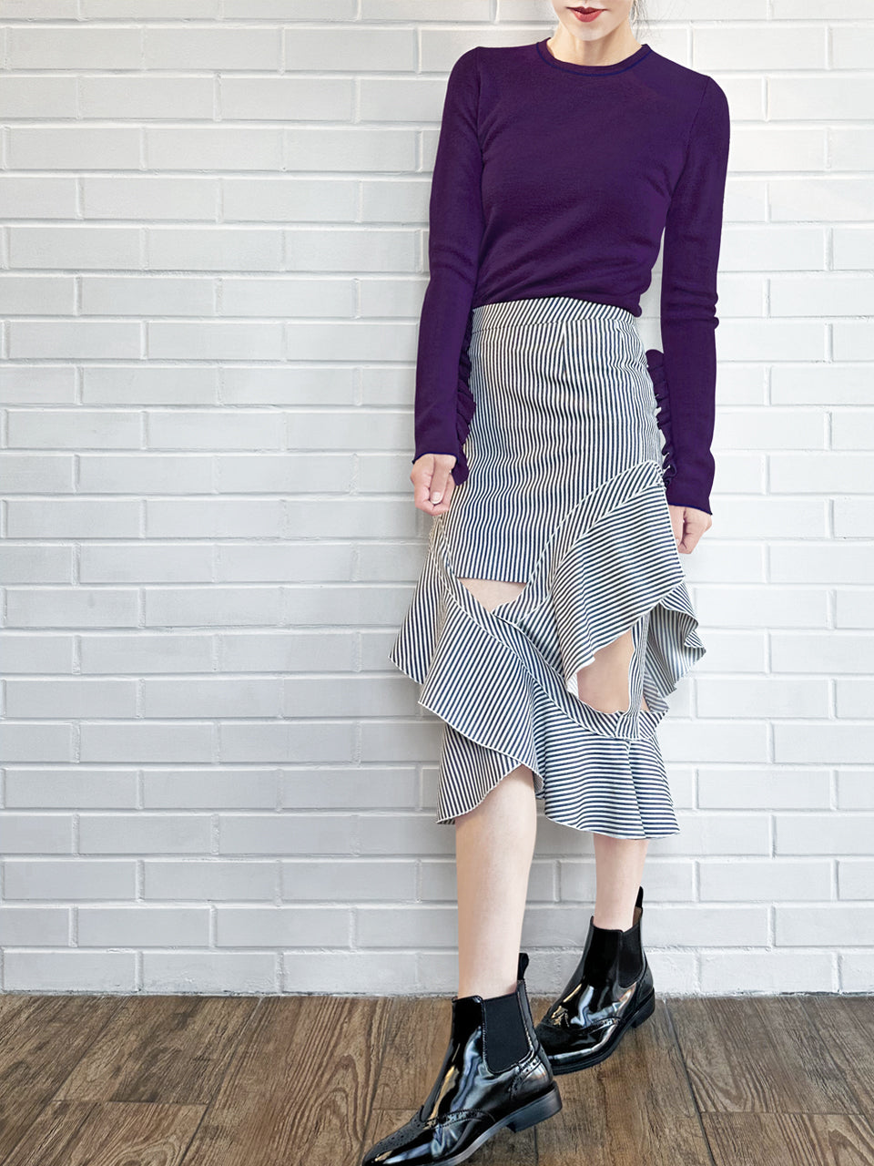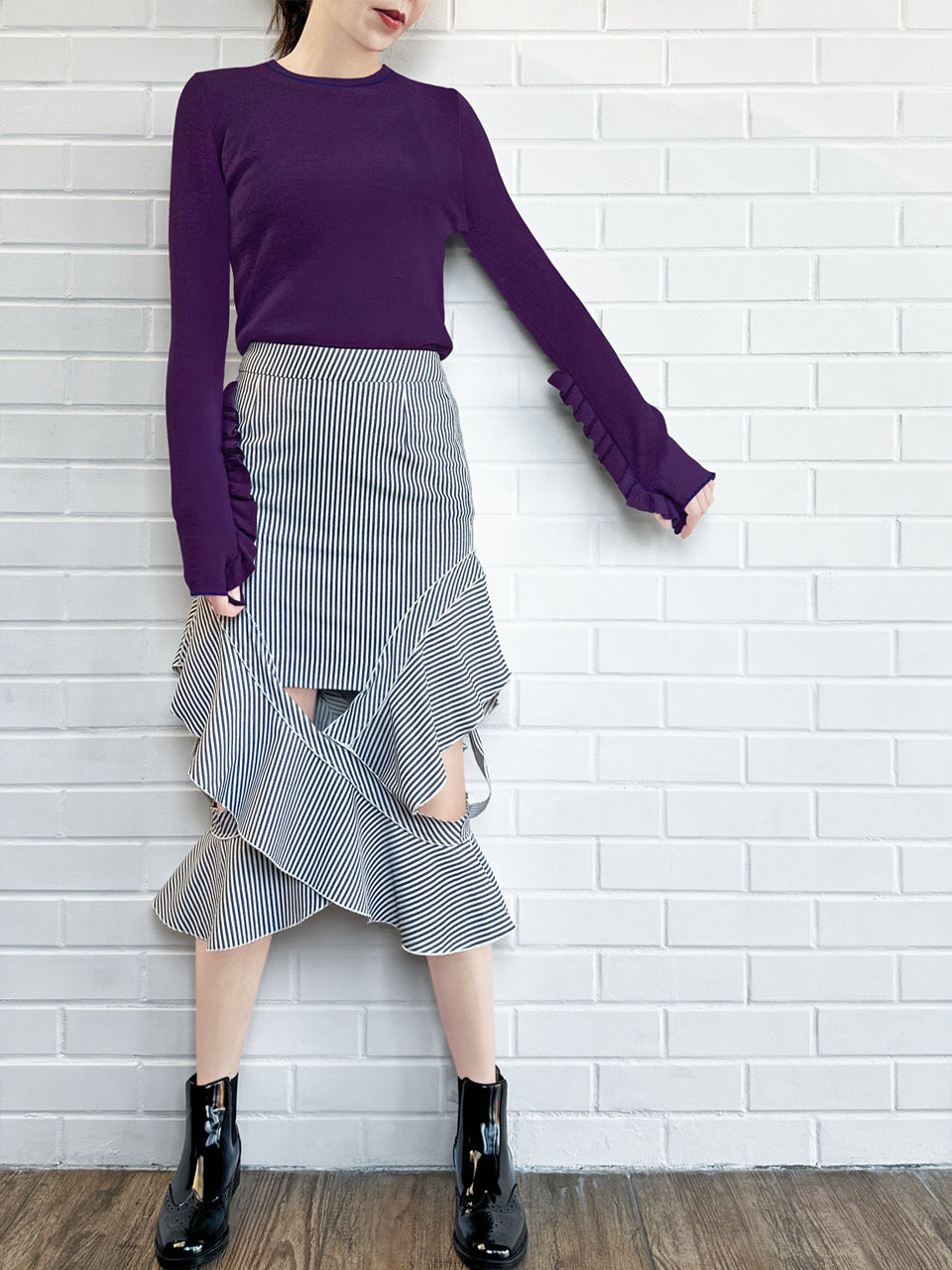 Surprise Sale! Purple Extra-long Ruffled Sleeve Wool Blend Jumper