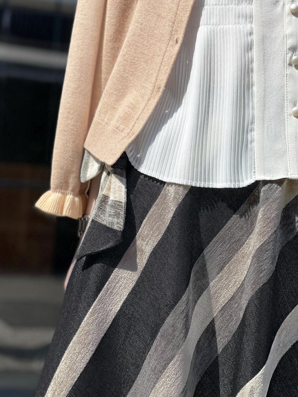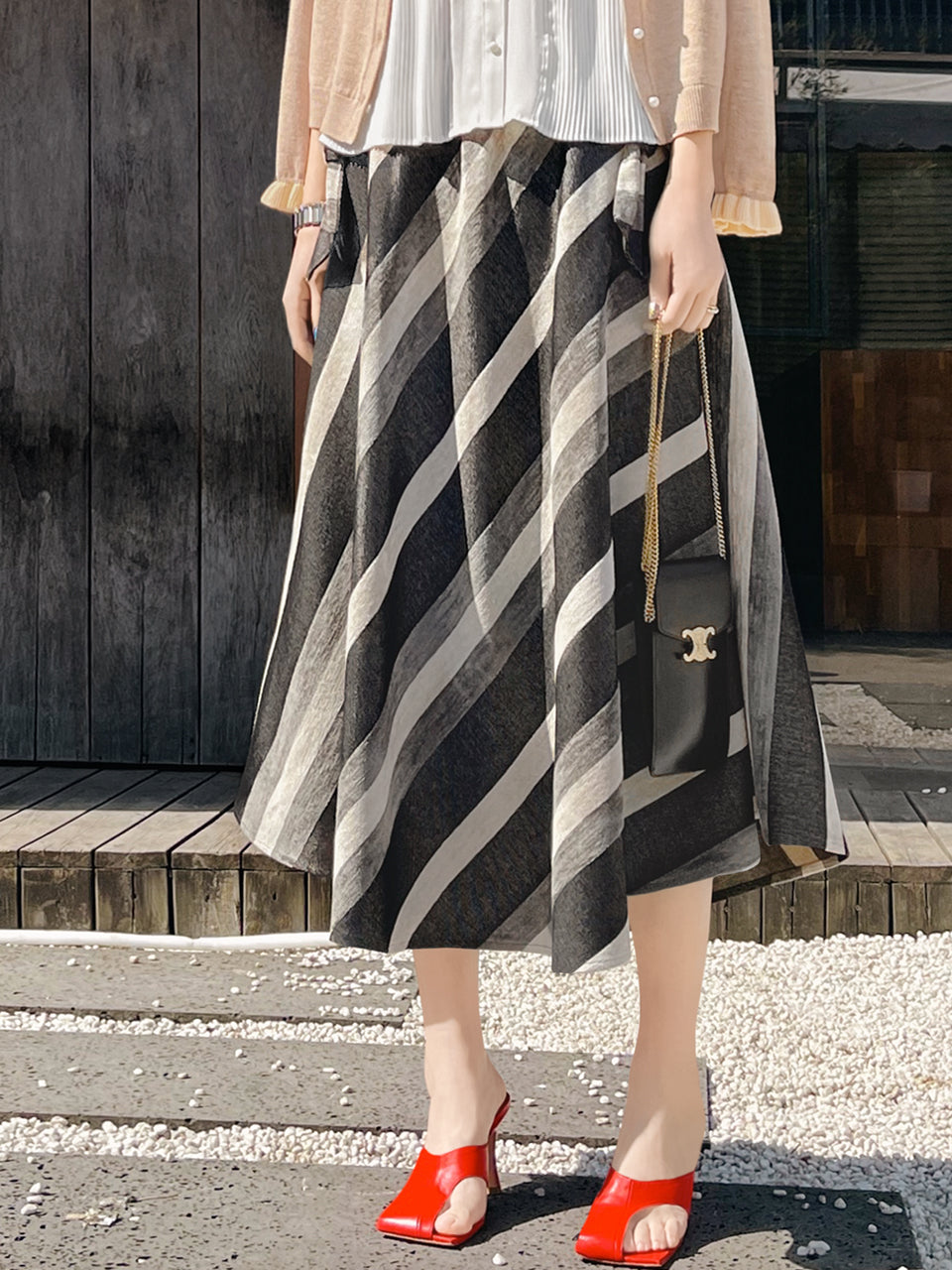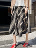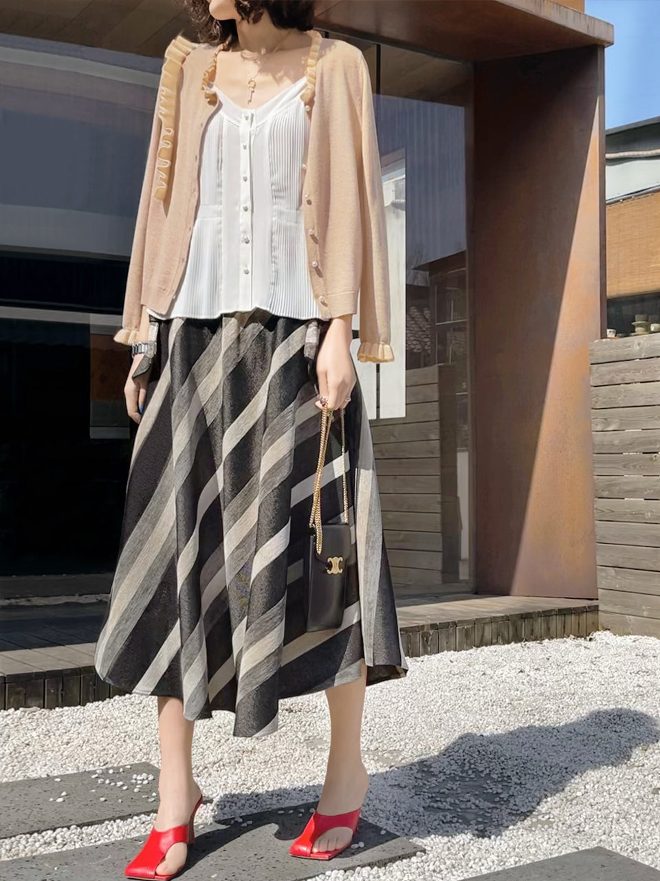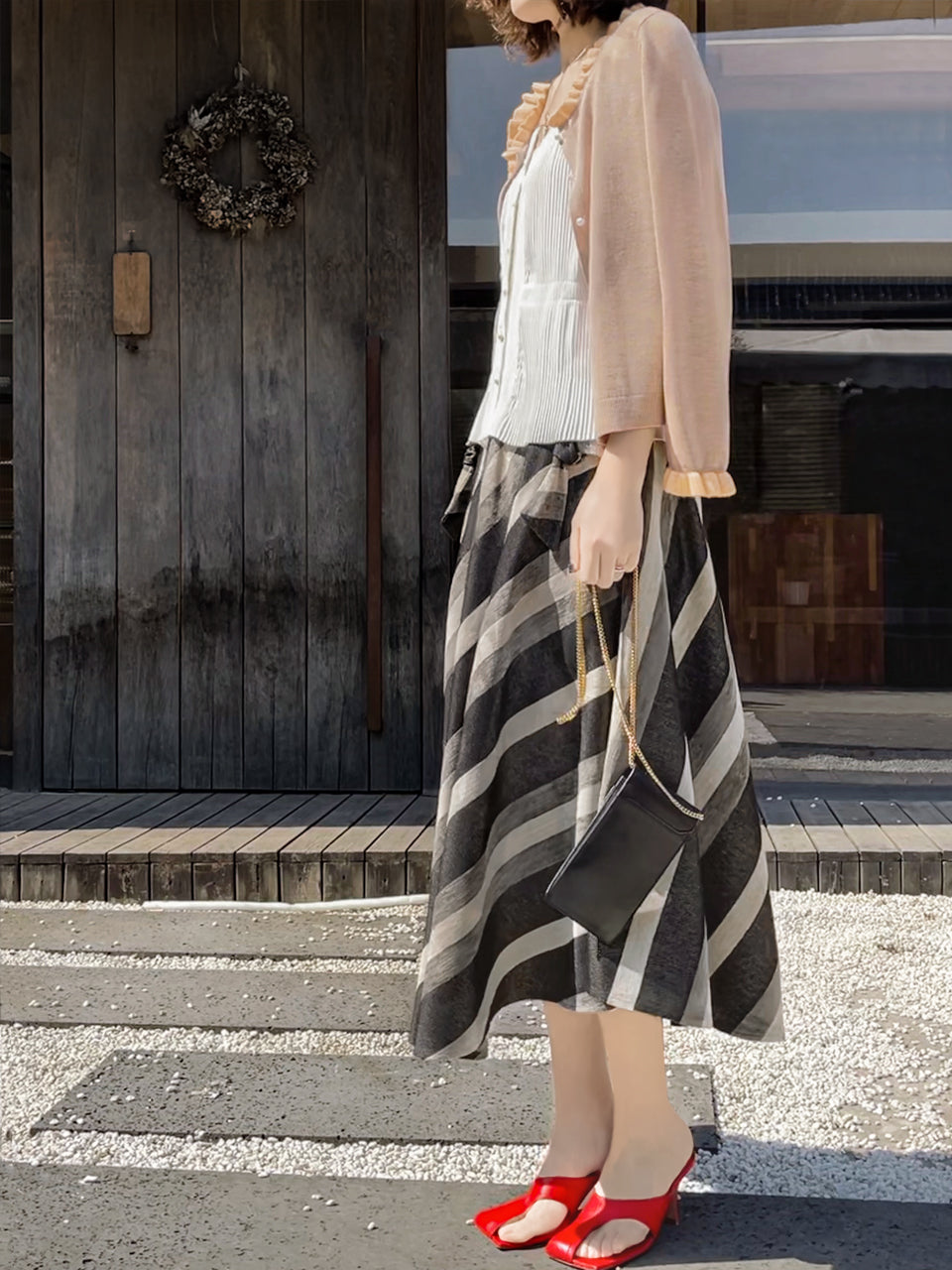 Surprise Sale! Velvet-Striped Denim Tie Bow Pockets Full Midi Skirt