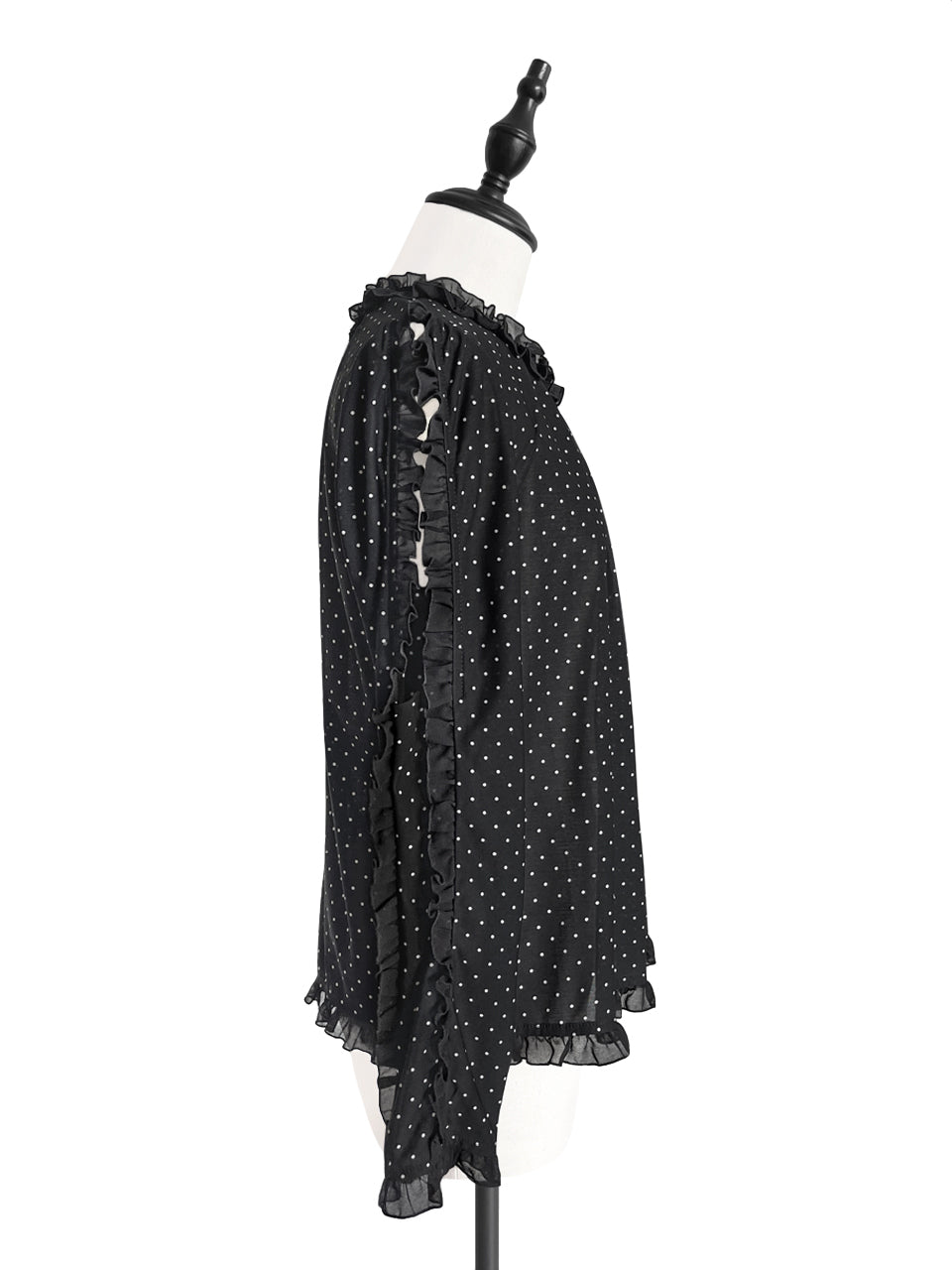 Surprise Sale! Dotty Ruffle Cut Out Sleeves Jersey Blouse