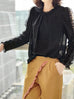 You can never have two many ruffle blouses - which is lucky as we can't stop designing them either. In delicate airy fabric, with rippling ruffles frame along collar, hem and sleeves, and a cold-shoulder cutouts, gathered lightly on the front neckline. This forever flattering high neck will take you anywhere.