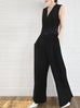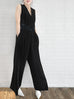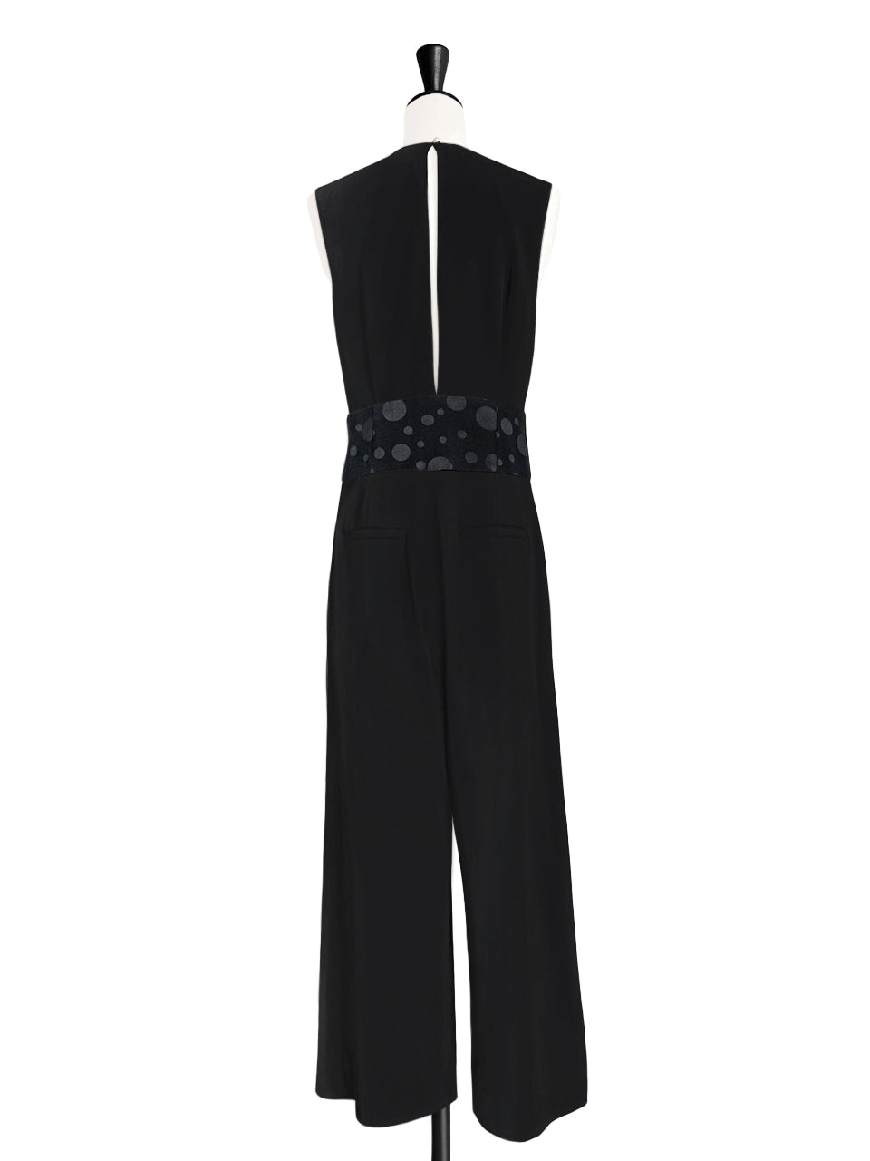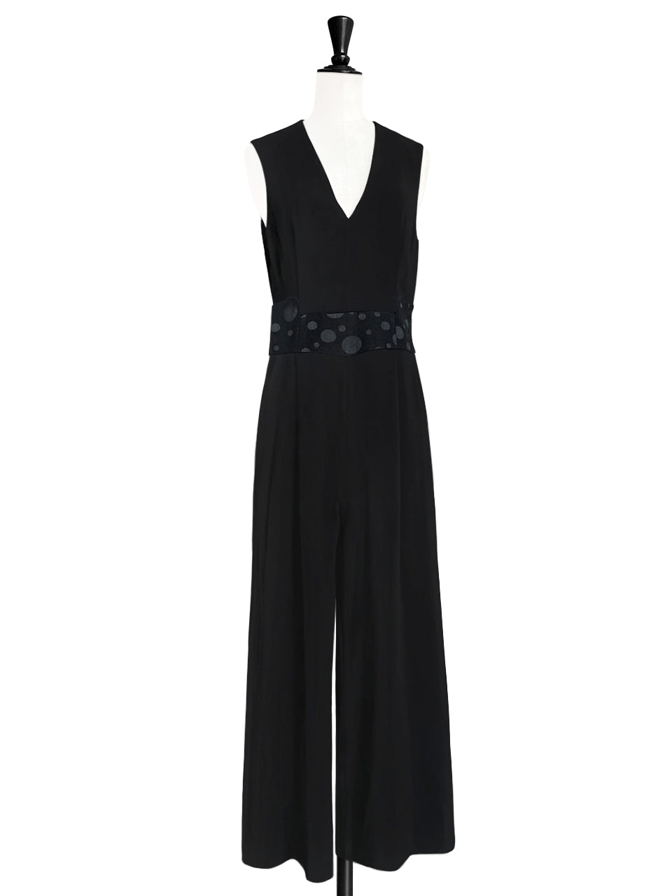 Surprise Sale! Elegant Black Dotty Belted Wide Leg Sleeveless Jumpsuit