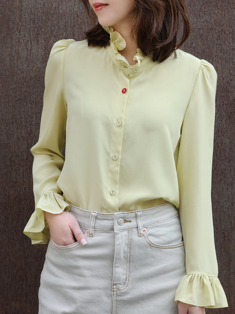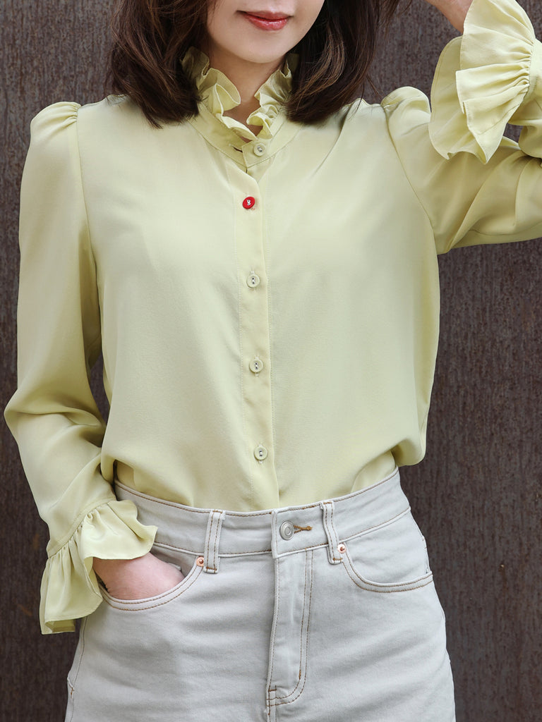 As much as we love our basics and minimalist pieces, we often crave something romantic and cute when the sun comes out. Made of dreamy, flowy fabric that softly reveals the skin, this exquisite top features a cascade of ruffles, a slightly gathered shoulder, and a swinging curved hem. It's an adorable and flawless addition to any wardrobe.