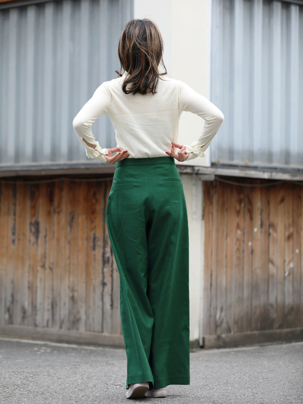 These signature wide-leg trousers feature lustrous pinstripes that enhance a clean, tailored silhouette with a flattering, leg-lengthening effect. Sitting neatly at the waist with refined pleats, they balance classic charm and modern ease. Crafted in an easy-care fabric, they transition effortlessly from polished office wear to chic evening style with understated sophistication. Available in two trendy colour: purple and green