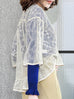 Last Chance! Ivory-White Floral Lace Cropped Peplum Blouse