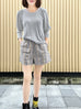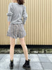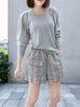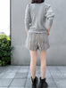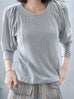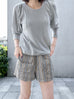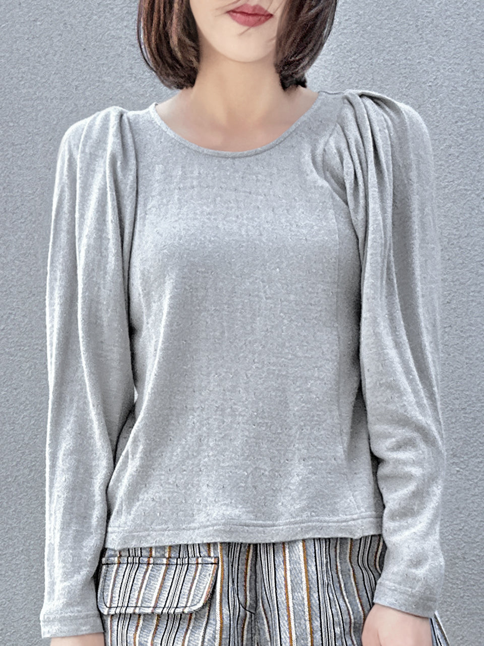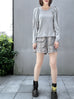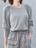Surprise Sale! Grey Lurex Round Collar Pleated Shoulder Knit Top
