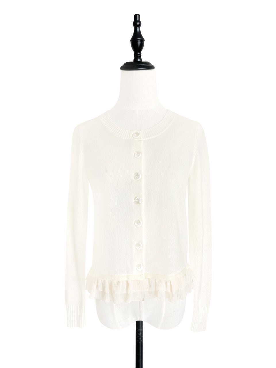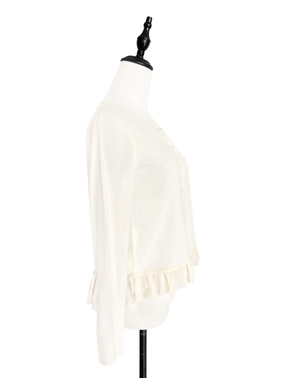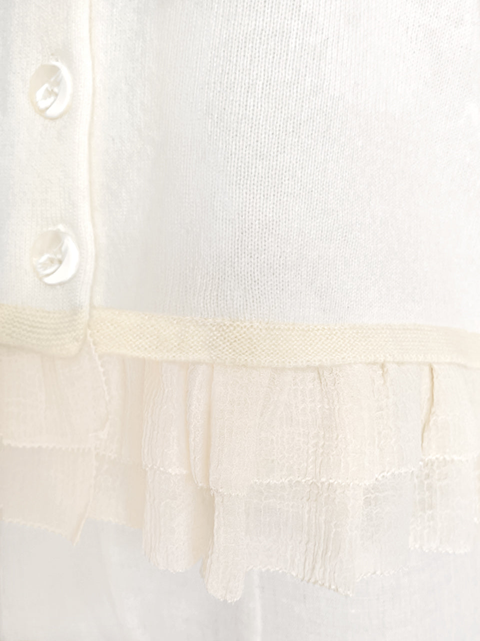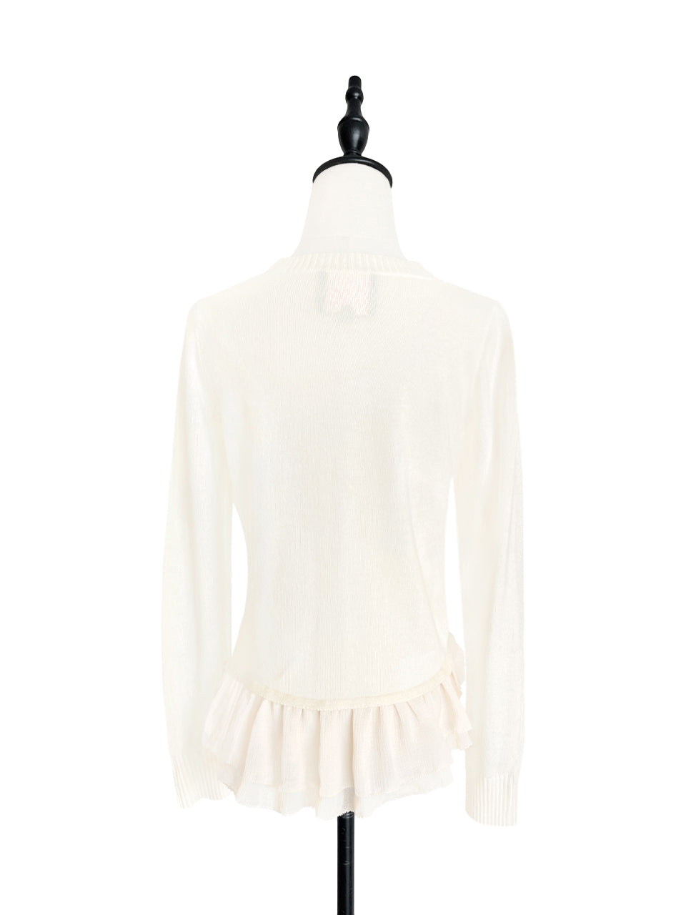 Final Sale! Ivory Cashmere & Wool Blended Chiffon Ruffle Hem Cardigan