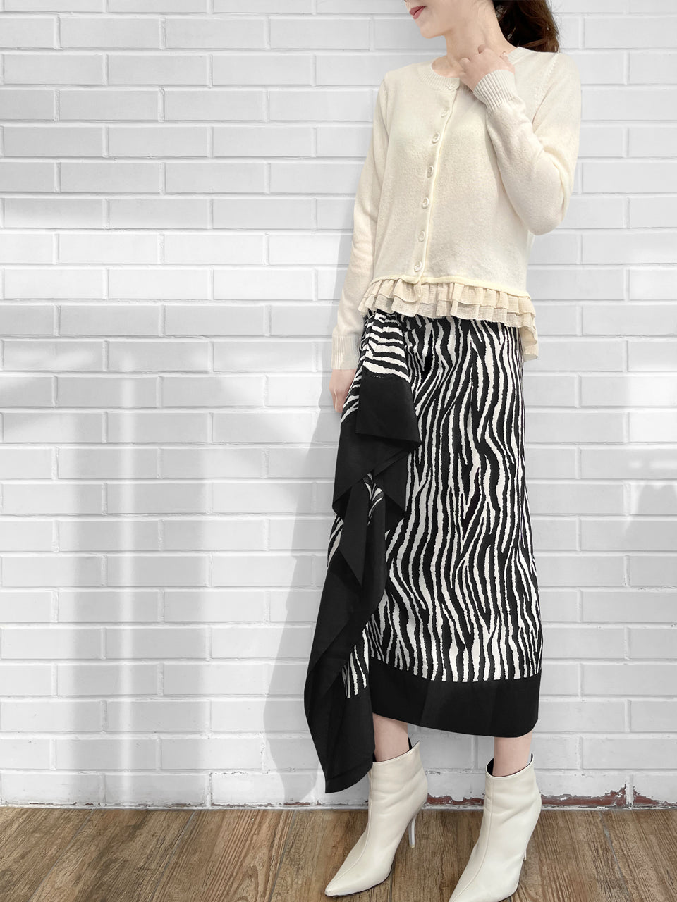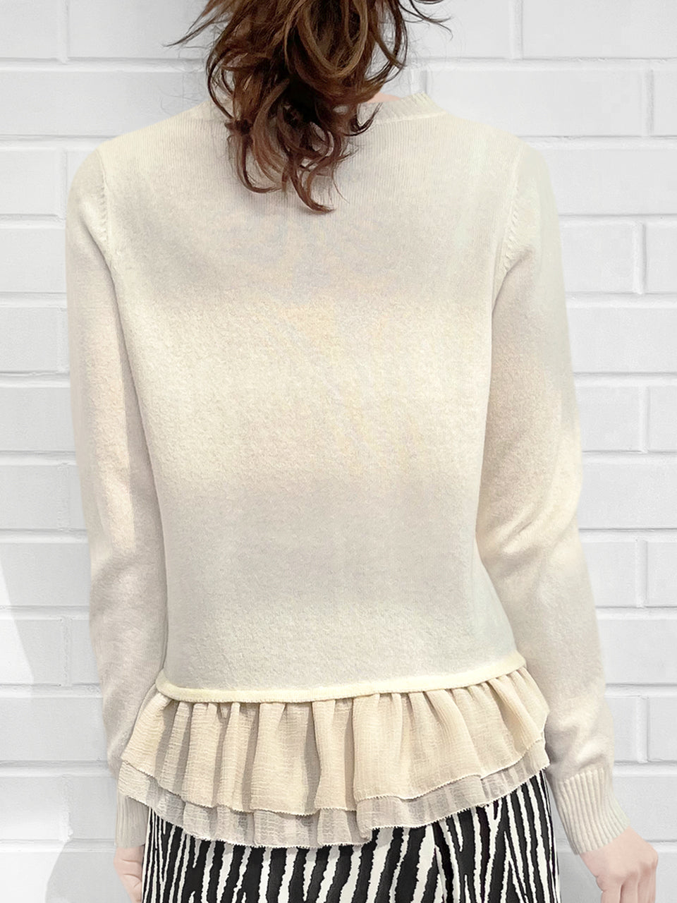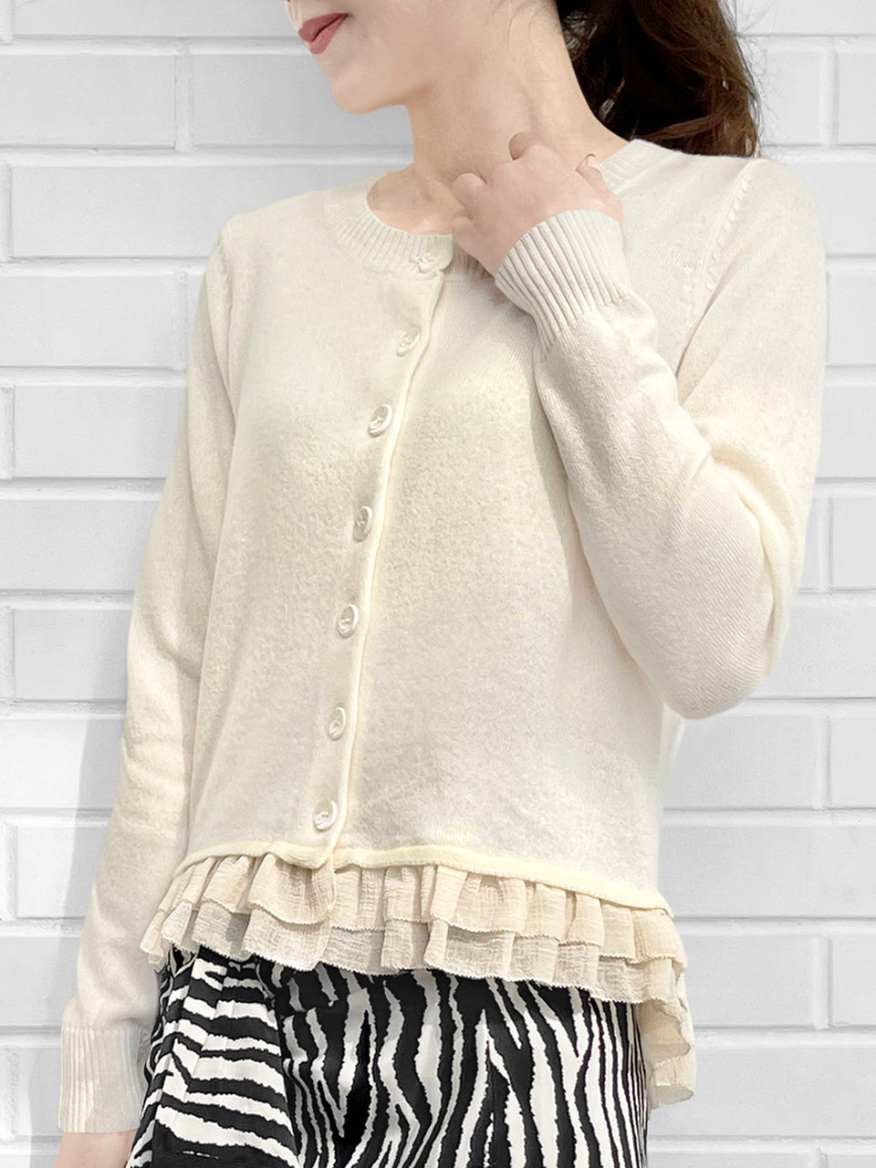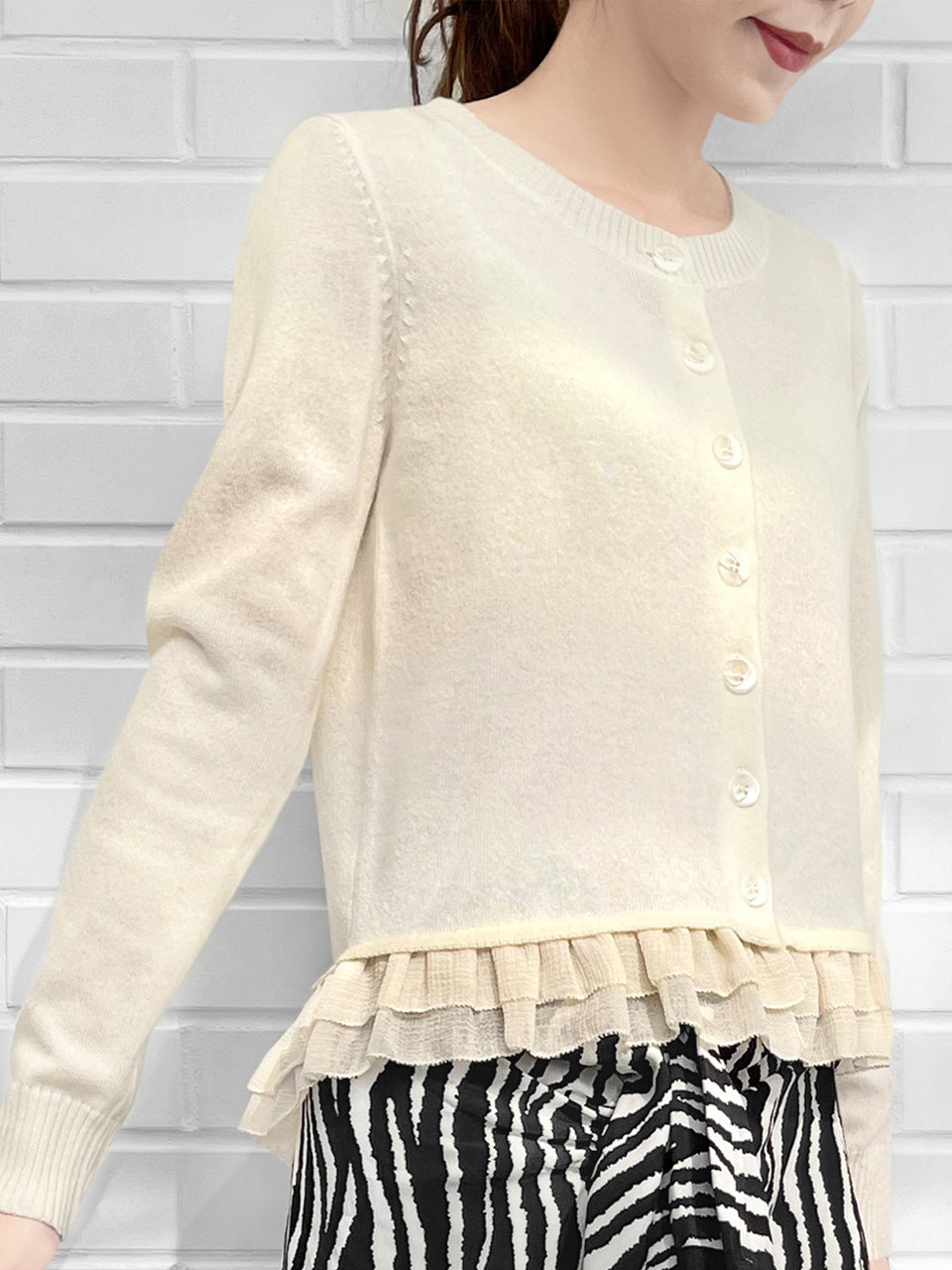 Final Sale! Ivory Cashmere & Wool Blended Chiffon Ruffle Hem Cardigan