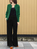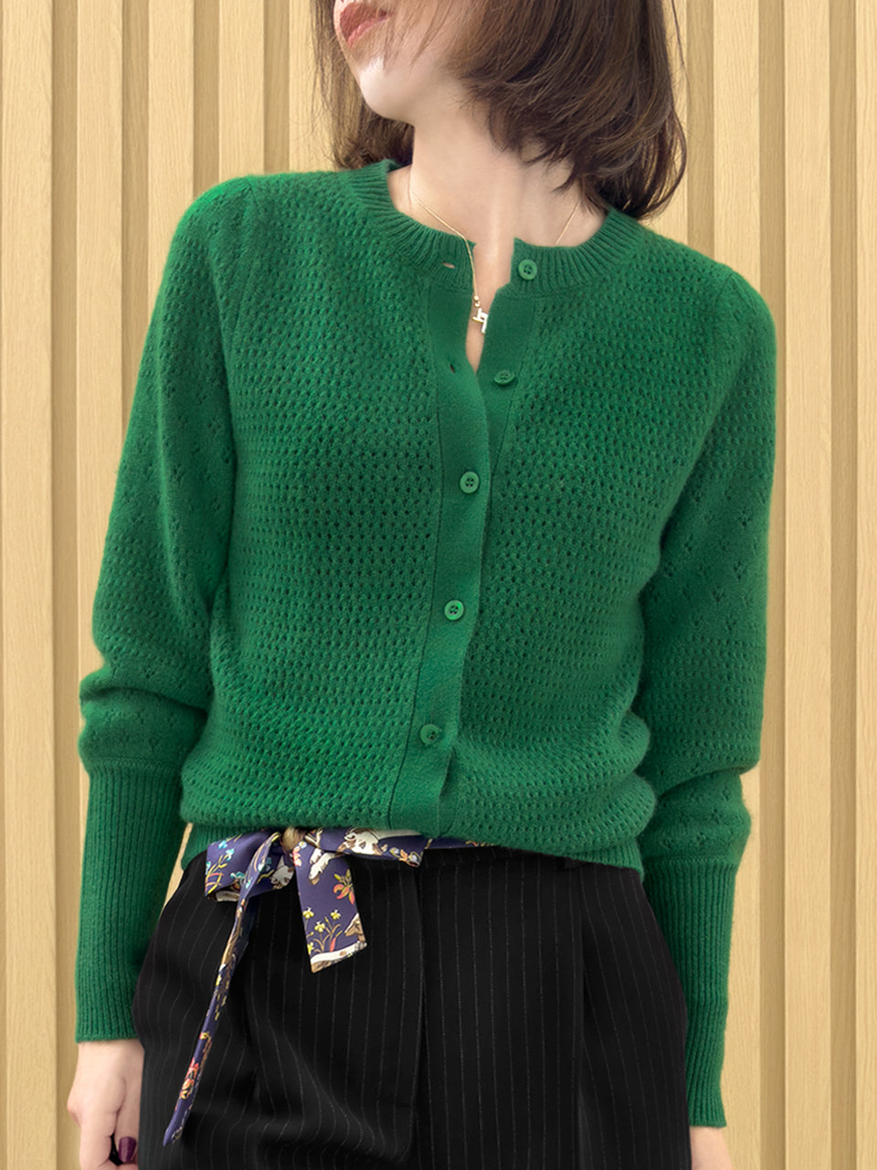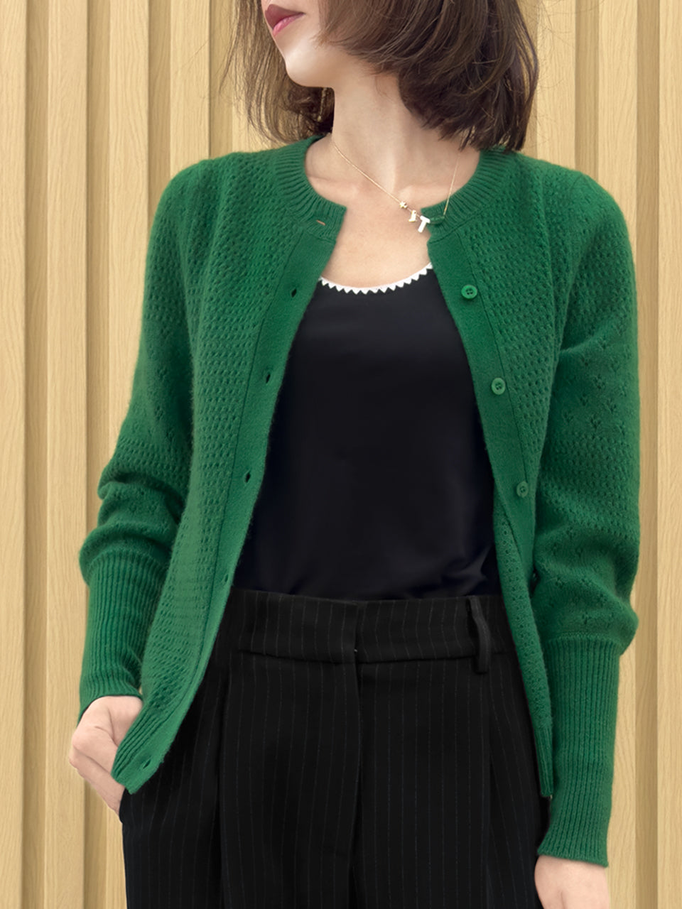 Jade Green Pointelle Stitches Cashmere Wool Blend Cardigan