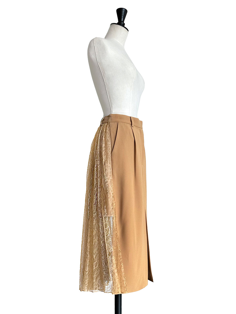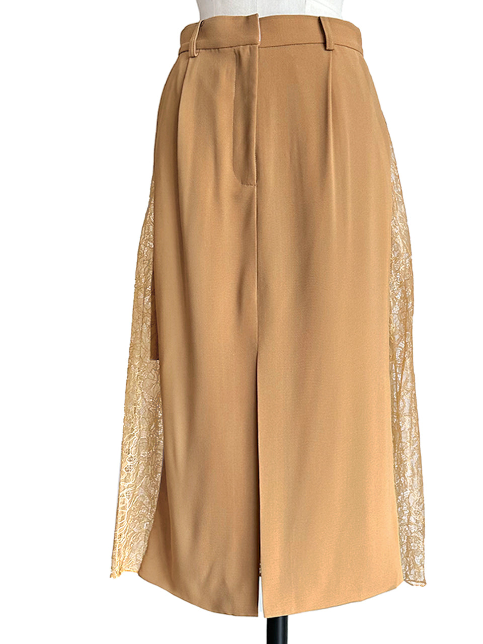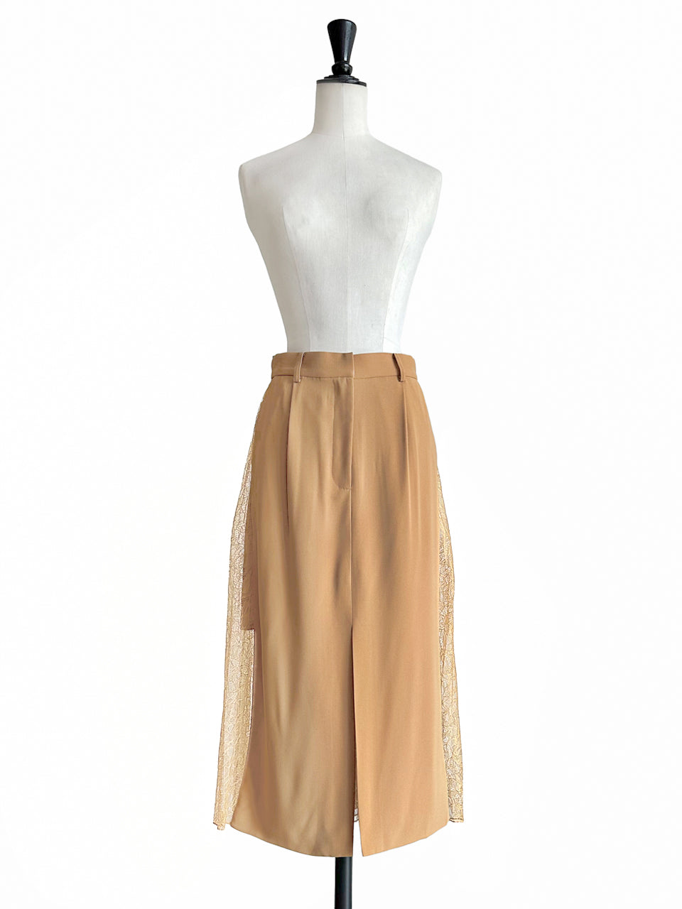Final Sale! Khaki Slit Front Pencil Skirt With Pleated Lace Back