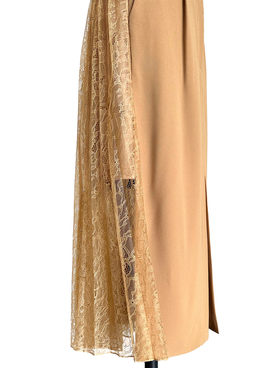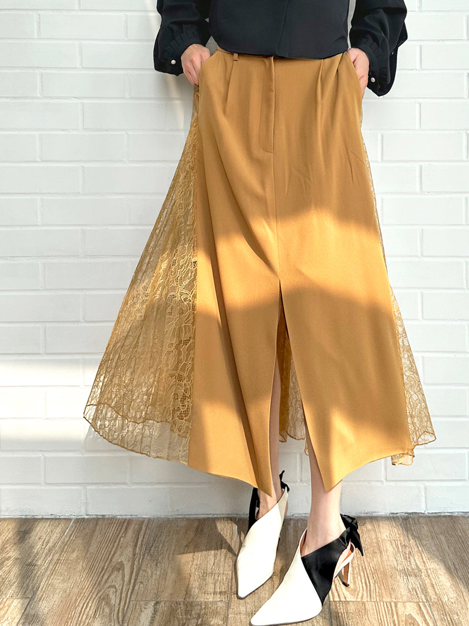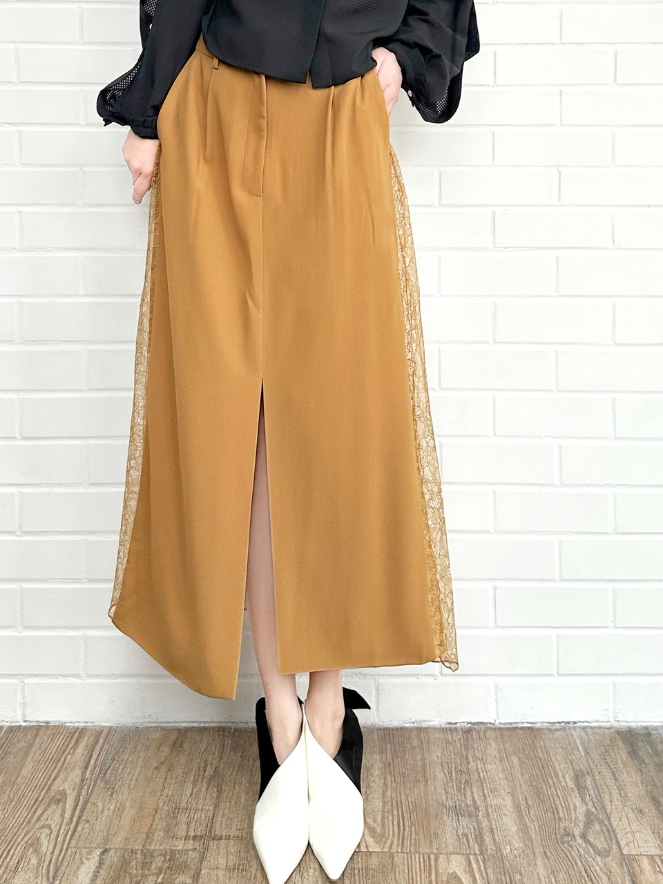 Final Sale! Khaki Slit Front Pencil Skirt With Pleated Lace Back