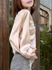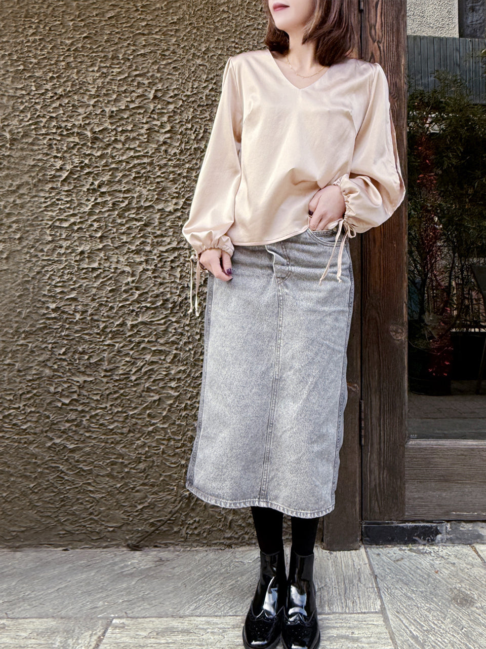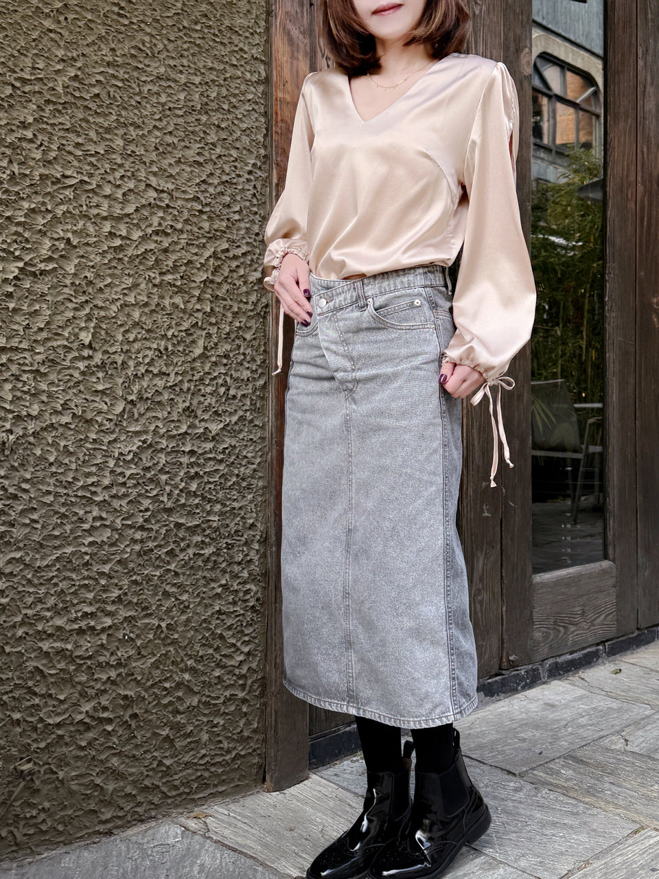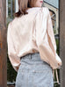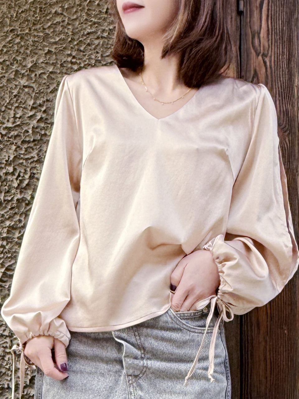 Light Beige Slit Sleeve Tie Cuffs V-neck Silky Blouse
