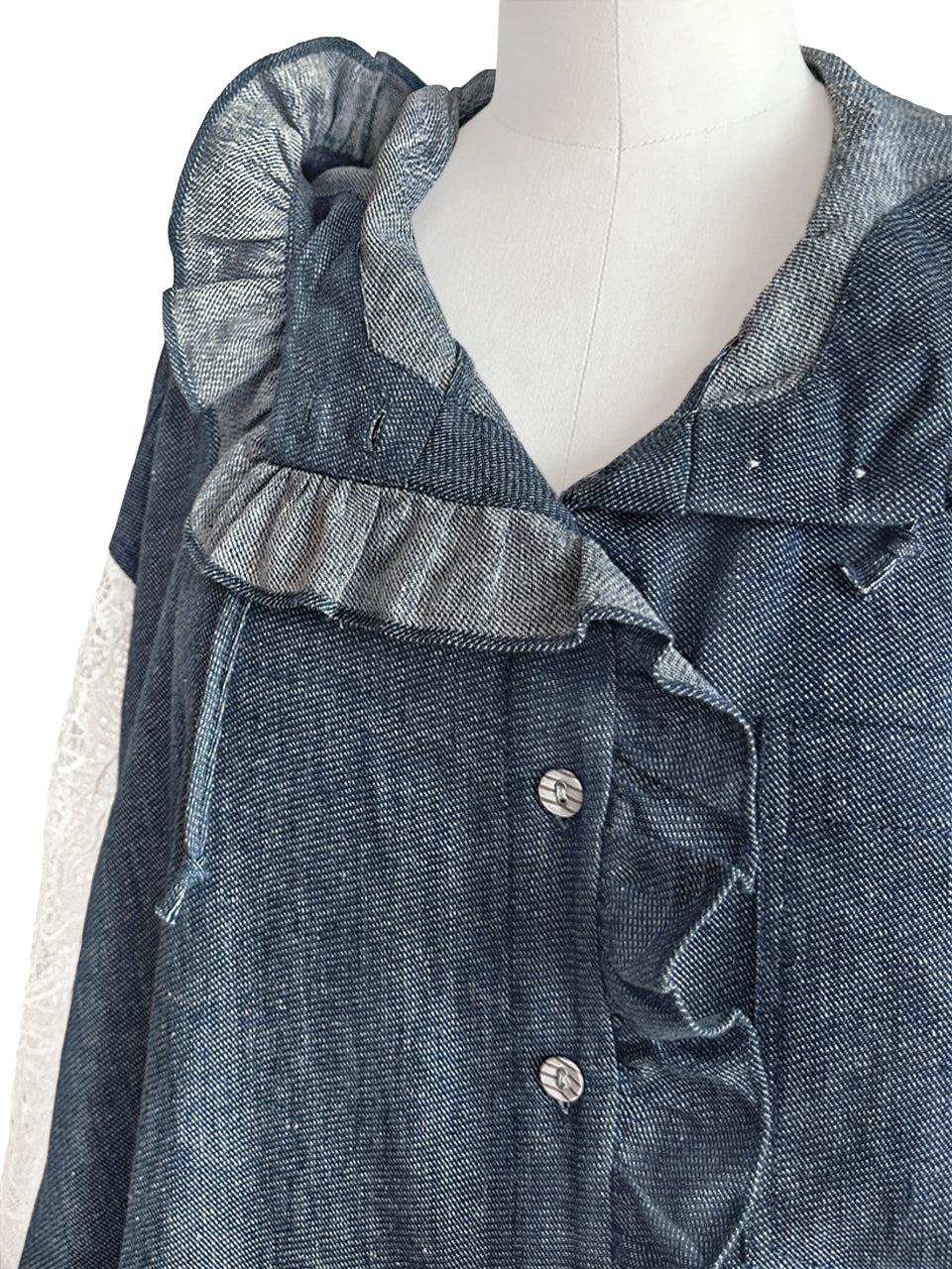 Surprise Sale! Denim Lace Sleeves Ruffle-Trimmed Parker Jacket