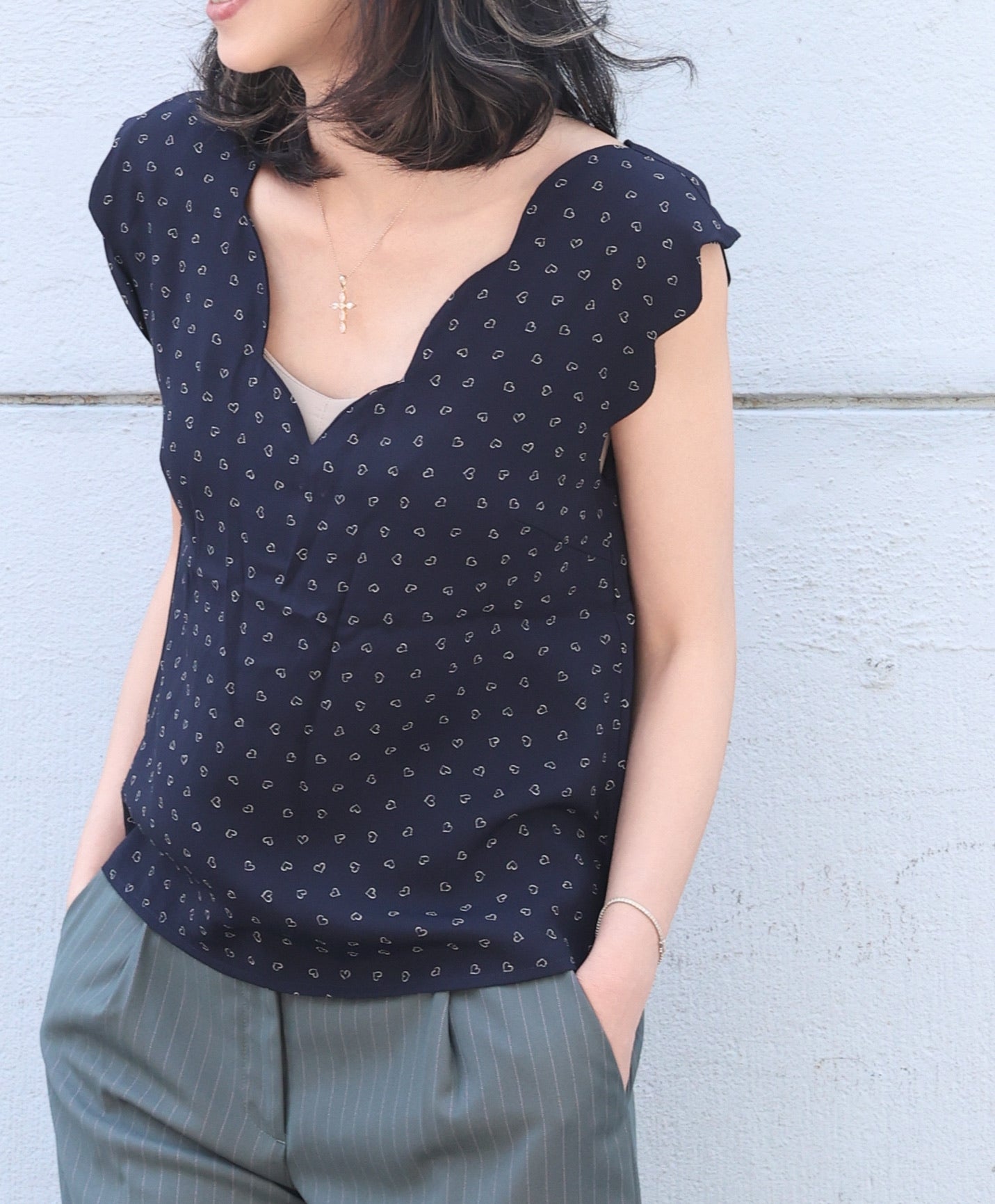 Little Hearts V-Neck Scalloped Tank Top