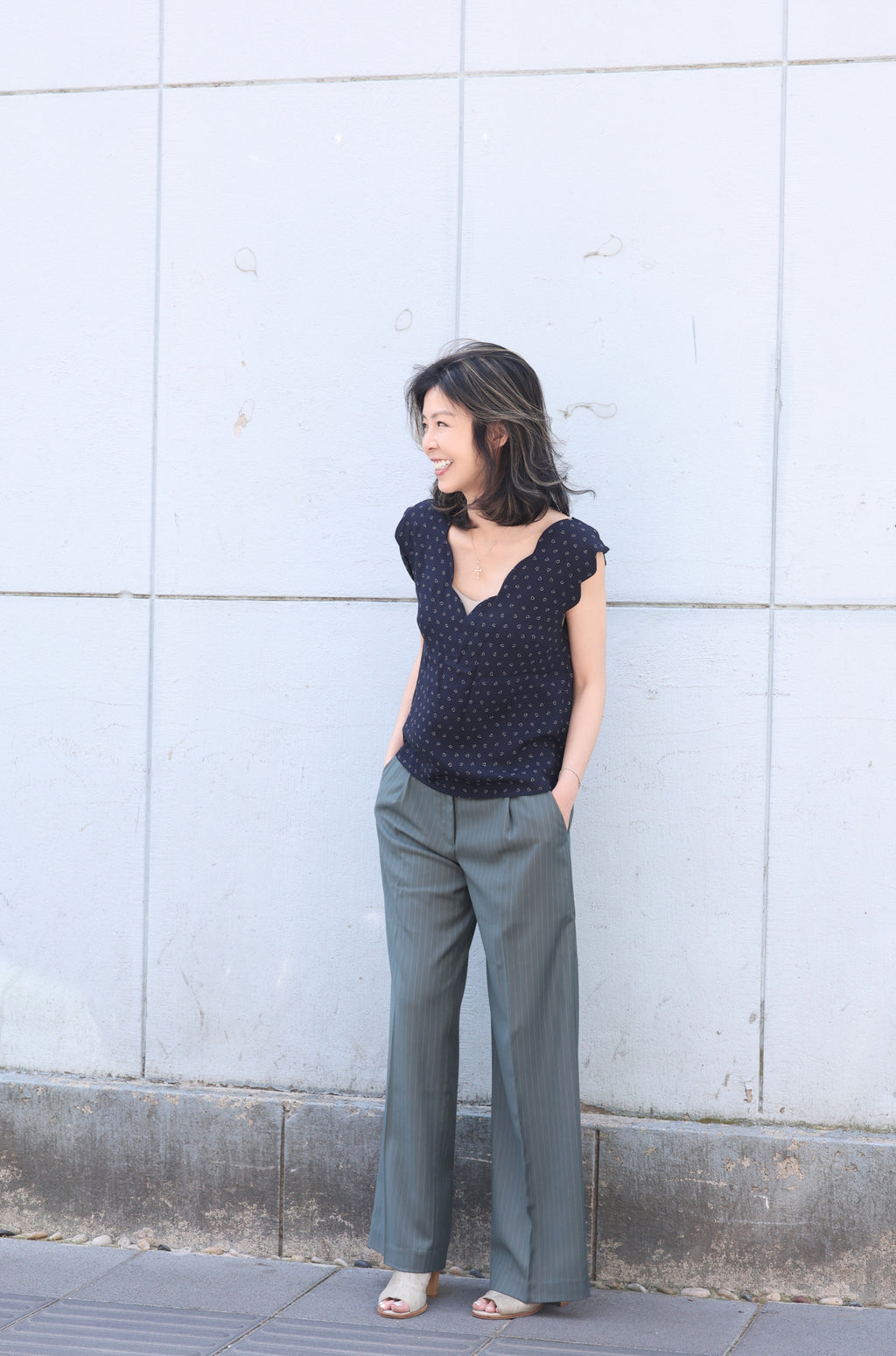 Our signature scallop tank returns this summer with a refreshed silhouette. Featuring a relaxed fit, wide straps, and delicate scalloped V-neckline and sleeves, it’s effortlessly feminine and easy to style. Crafted for comfort and movement, this airy layering piece works just as beautifully on its own or under your favourite light outerwear. A timeless wardrobe staple.