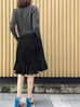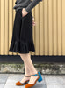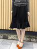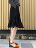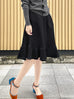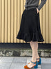 Lustrous Black Ruffle Hem A-line Knee Length Skirt