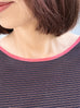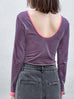 Final Sale! Navy/ Orange Stripe Contrast Ruffle Cuff U-back Knit Top