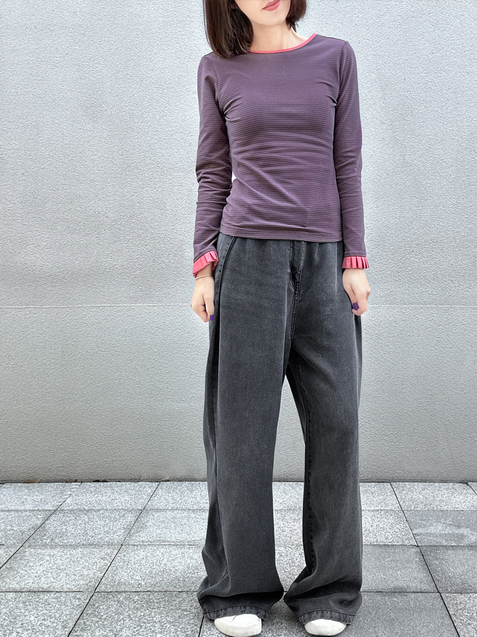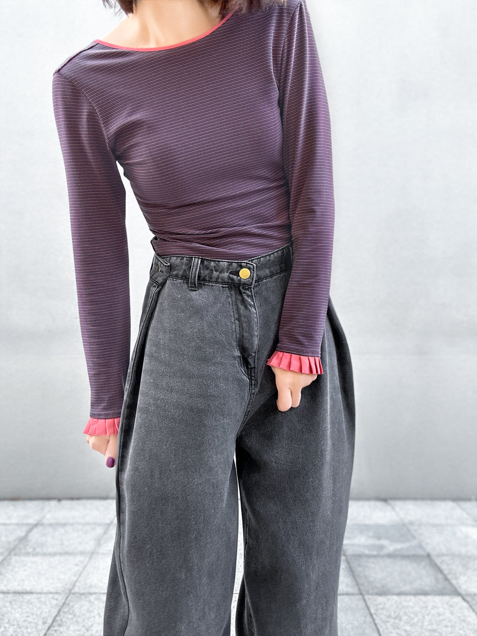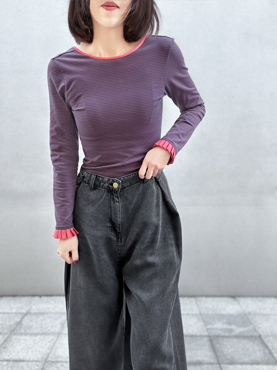 Crewneck; Long sleeves with ruffle cuffs. Perfect for layering