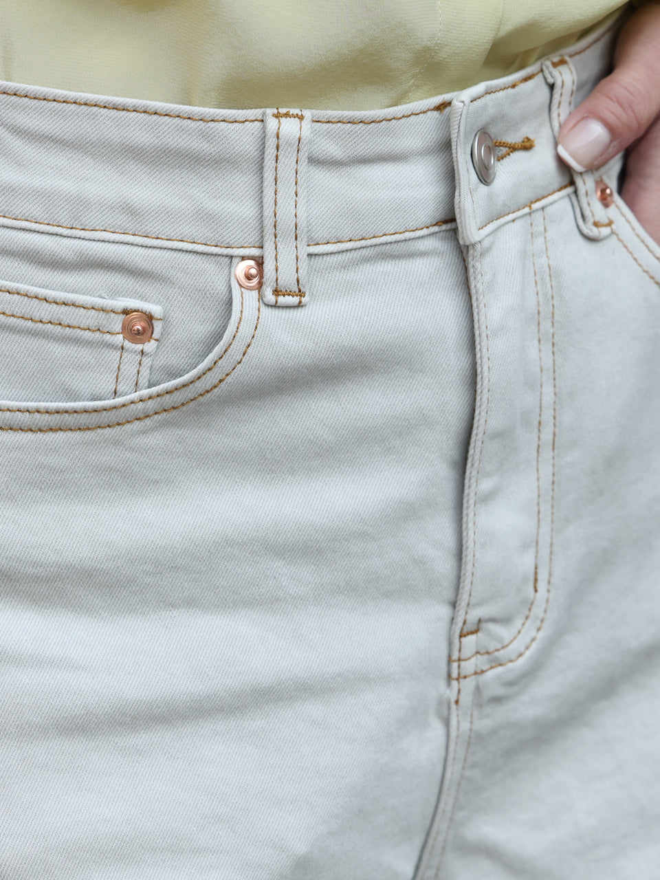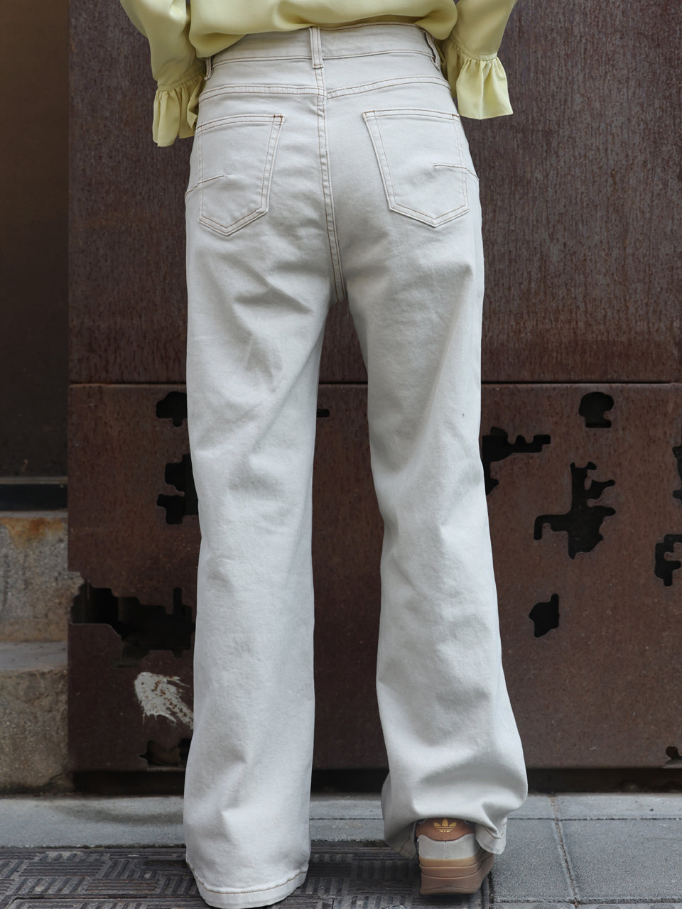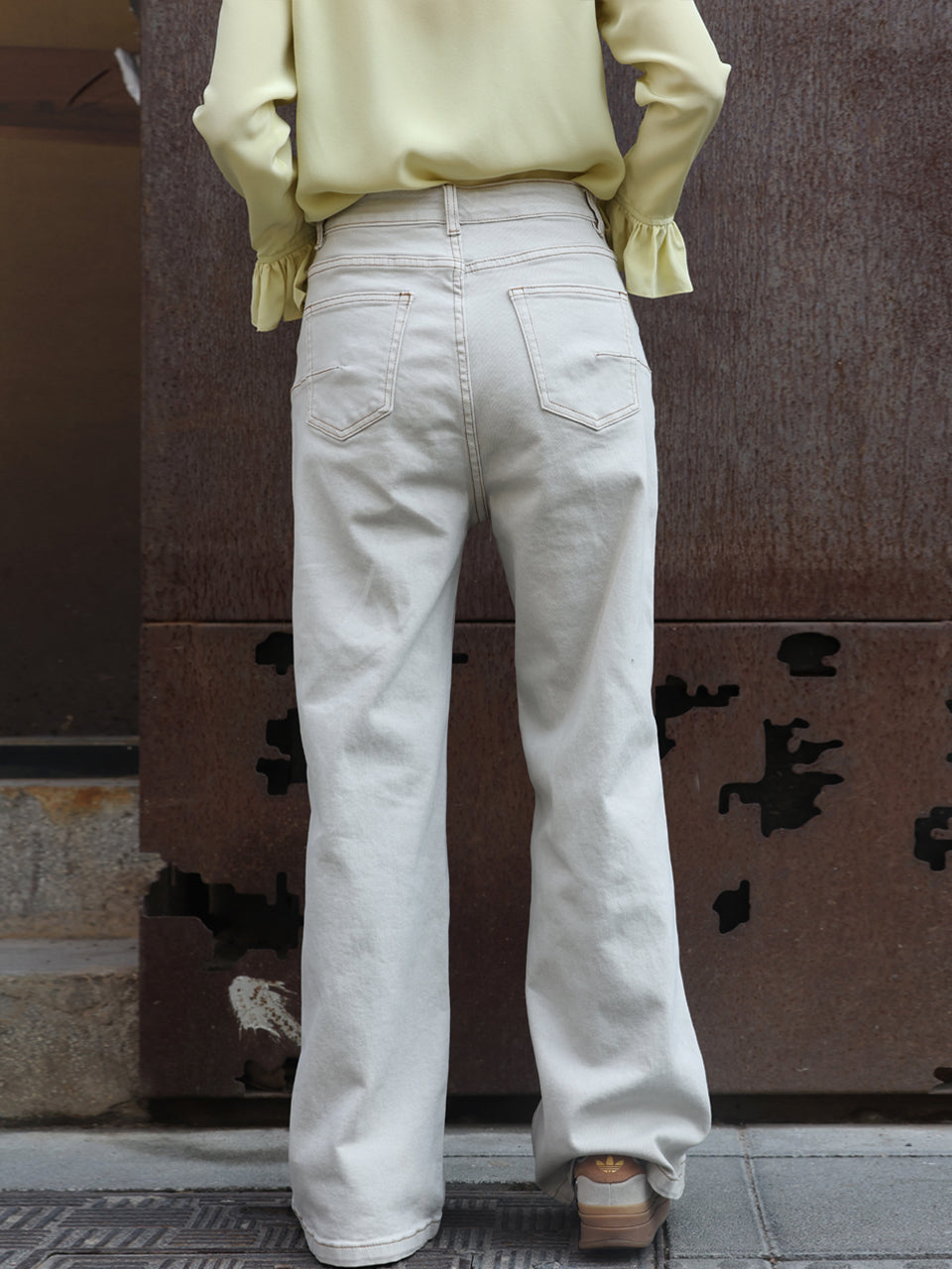Oyster Grey White Wash Contrasting Stitches Straight Leg Jeans