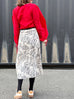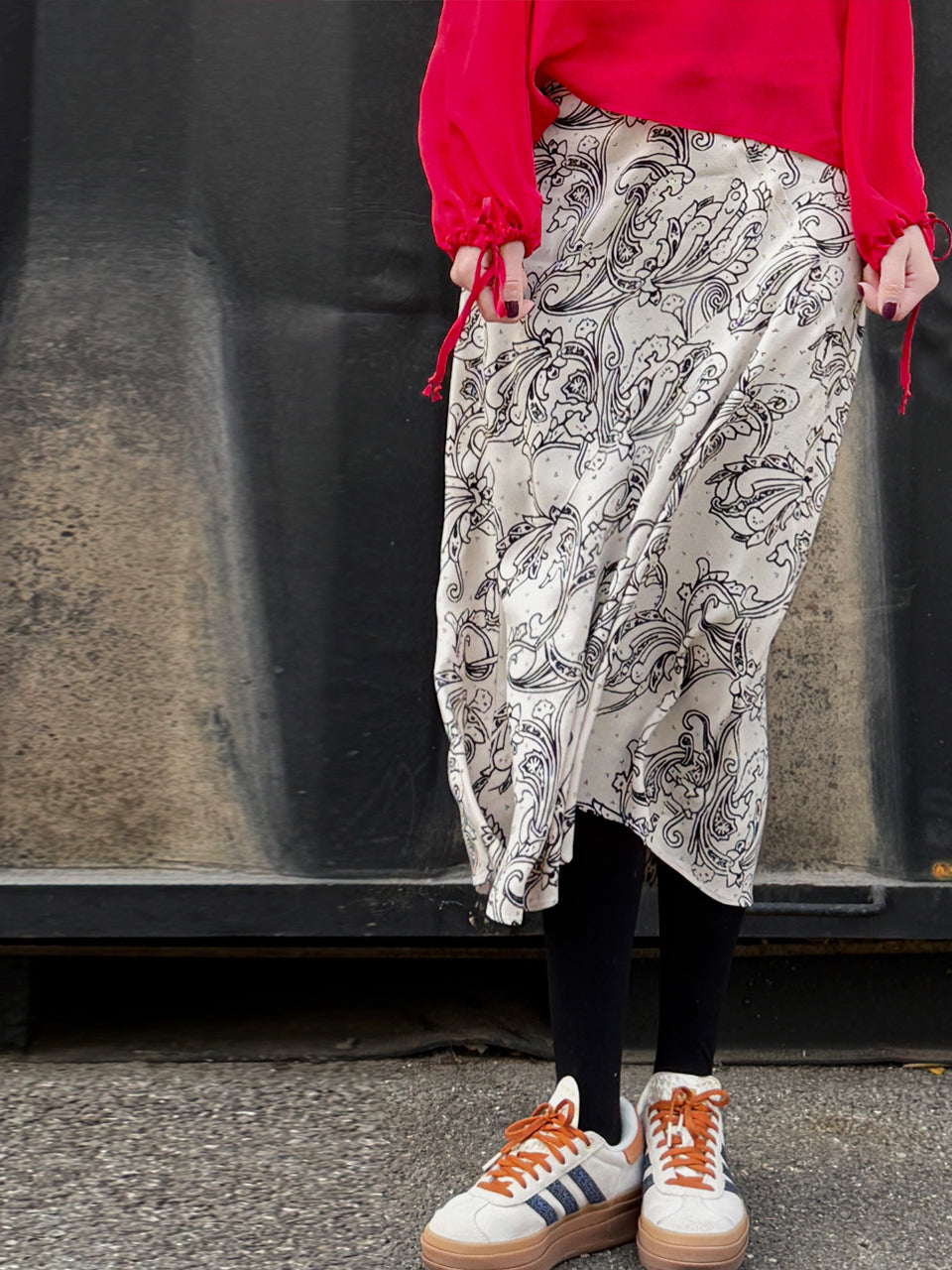 Paisley Floral Print Layered Waist A-line Airy Midi Skirt