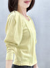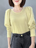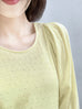 Surprise Sale! Yellow Lurex Round Collar Pleated Shoulder Knit Top