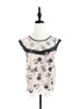 Surprise Sale! Pink Blossom Mesh Flutter Overlay Contrast Trim Silk Top