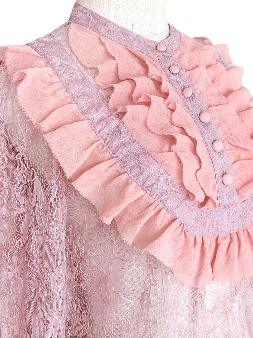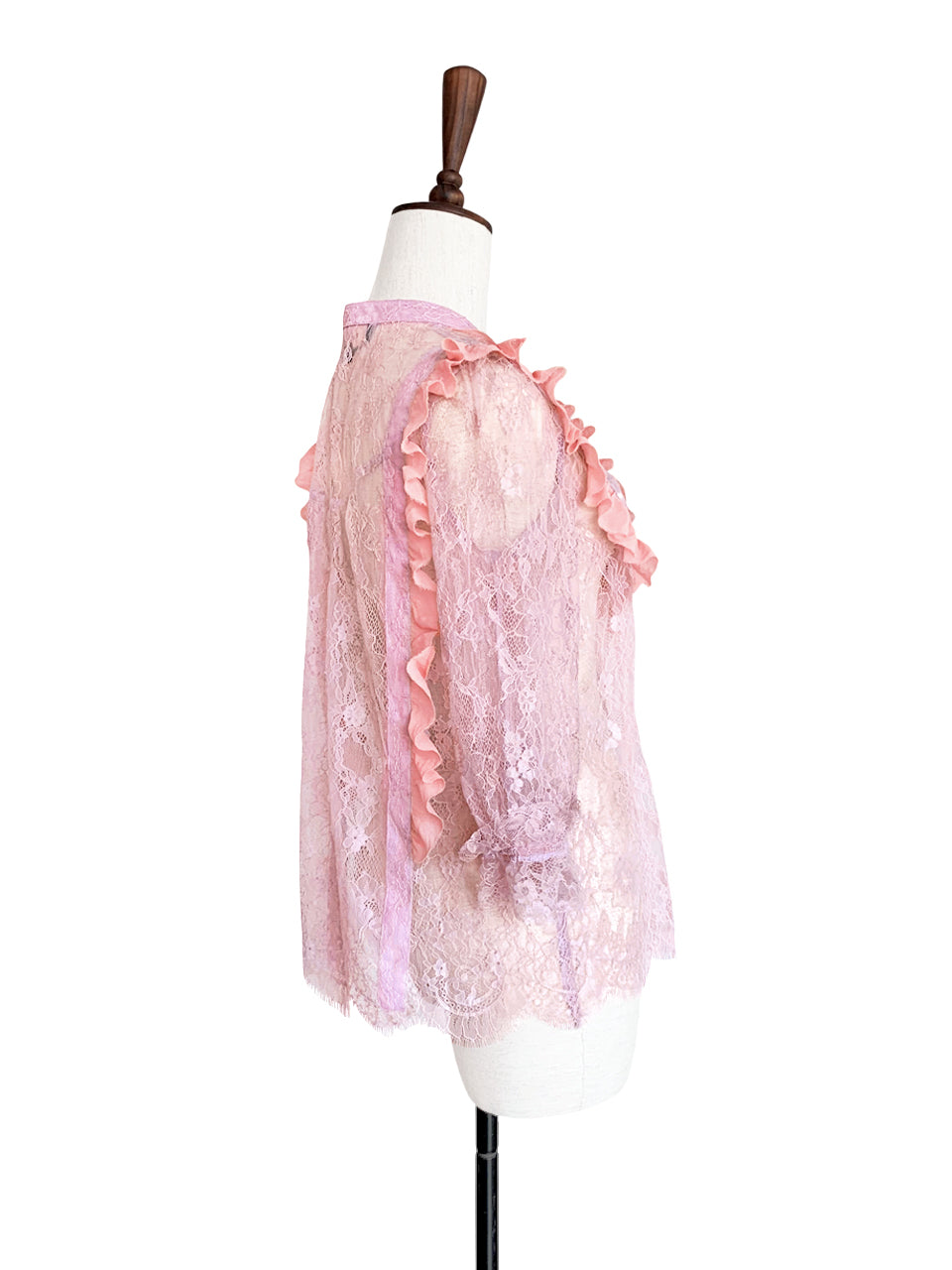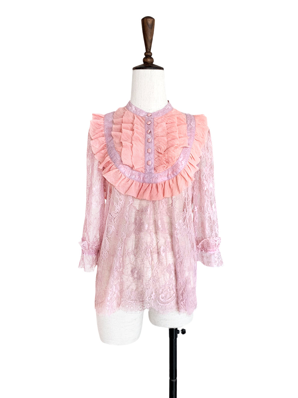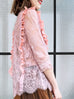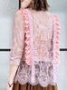 Pinky-Day! Pink Romance Ruffle Collar Sheer Eyelash Lace Blouse
