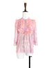 A ruffle-trimmed yoke and mock neck bring Victorian-inspired style to your chic, warm-weather wardrobe with this sheer floral tunic blouse in a sweet pink hue