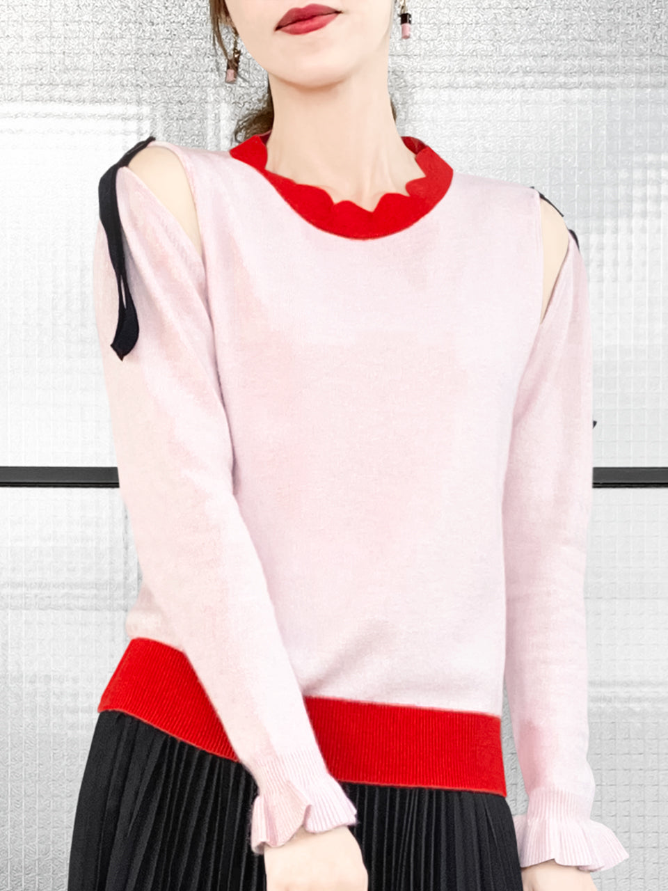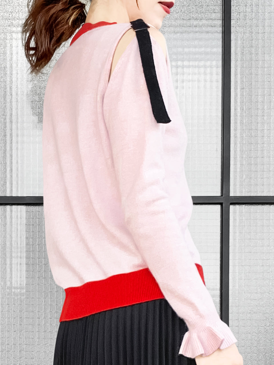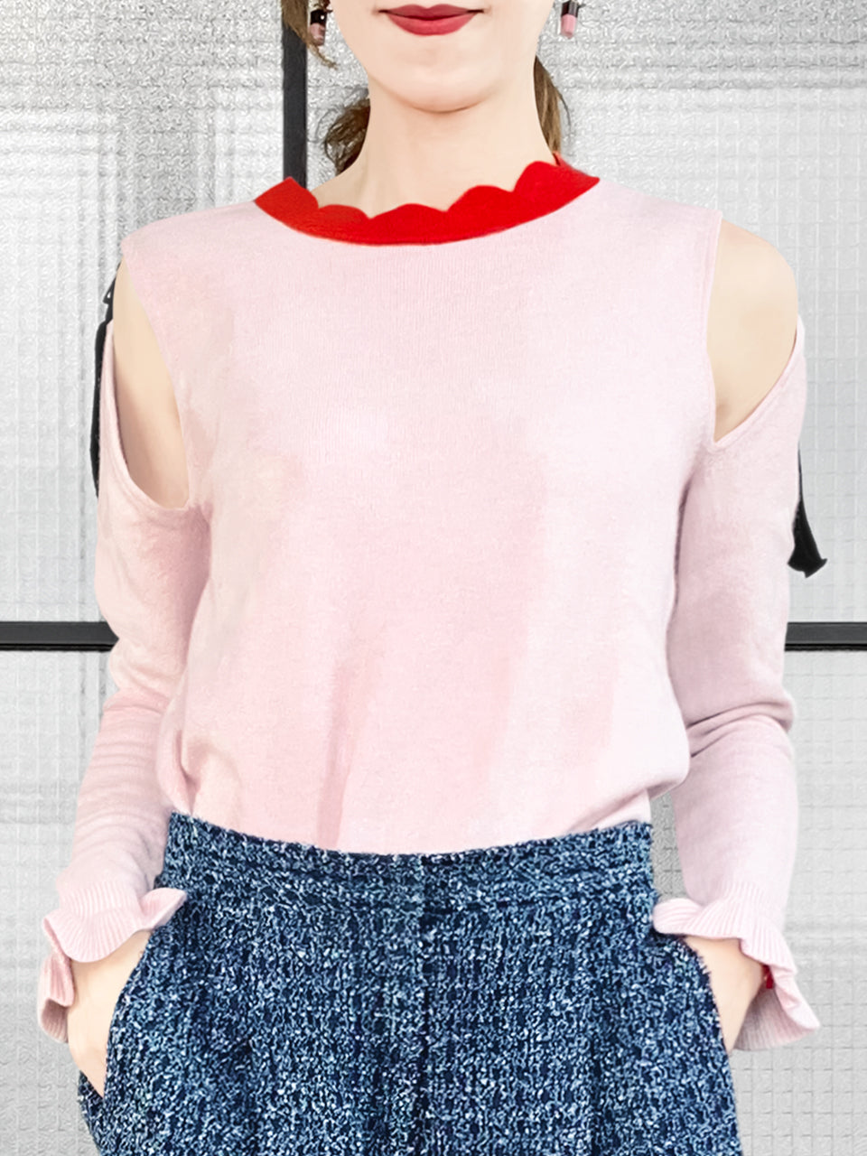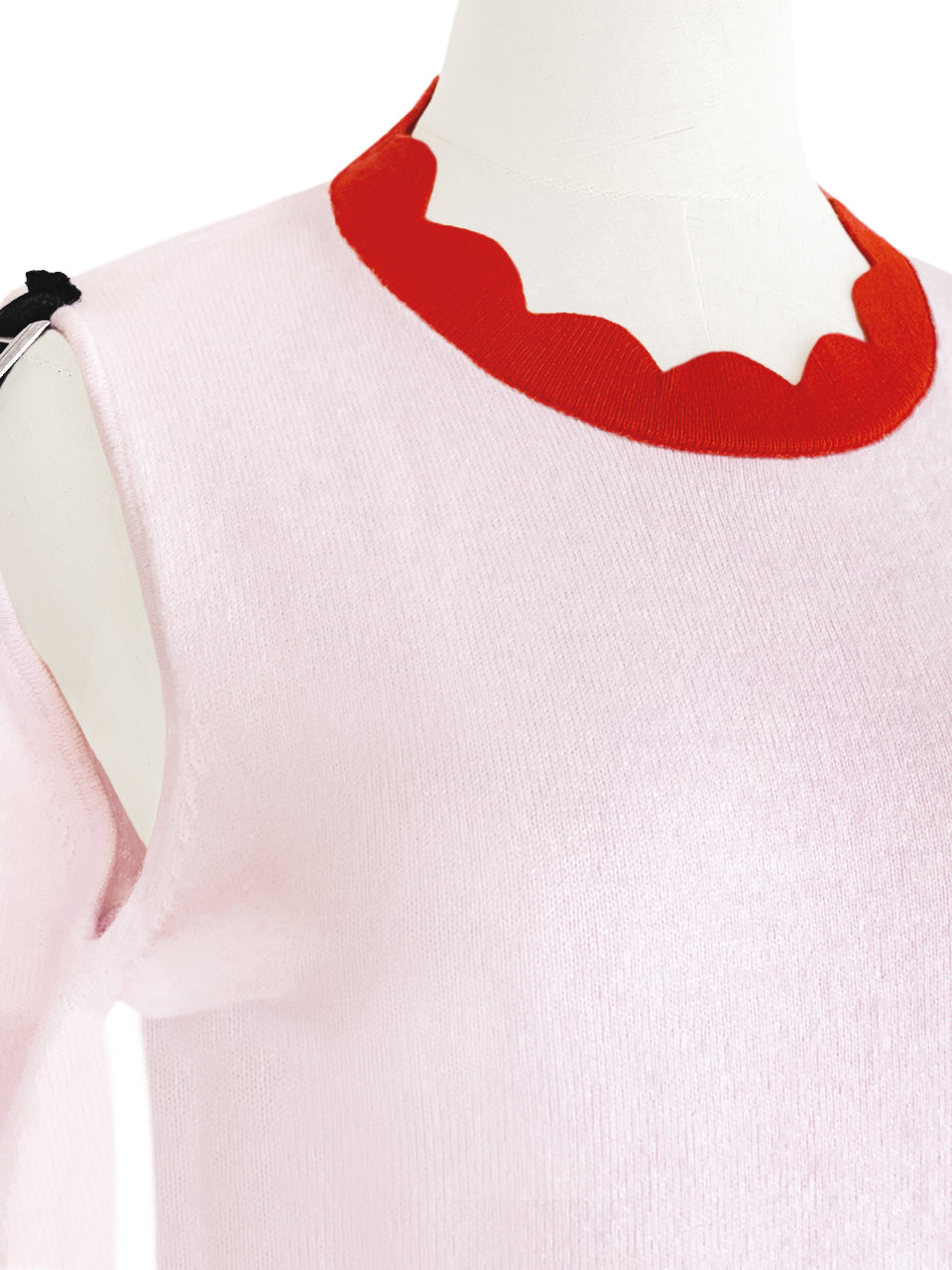 Surprise Sale! Pinky Colourblock Scallop Collar Cold-Shoulder Cashmere Blend Sweater