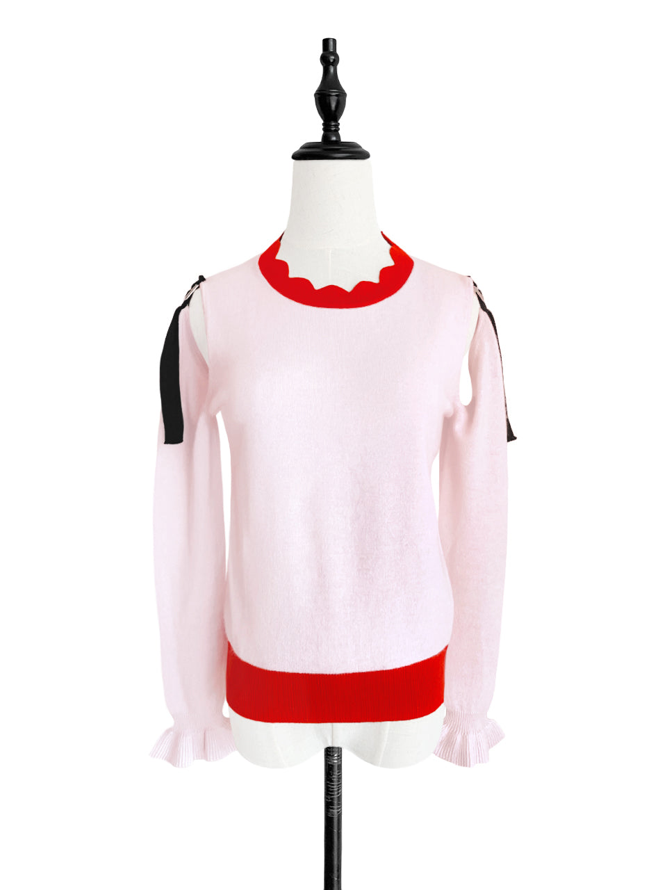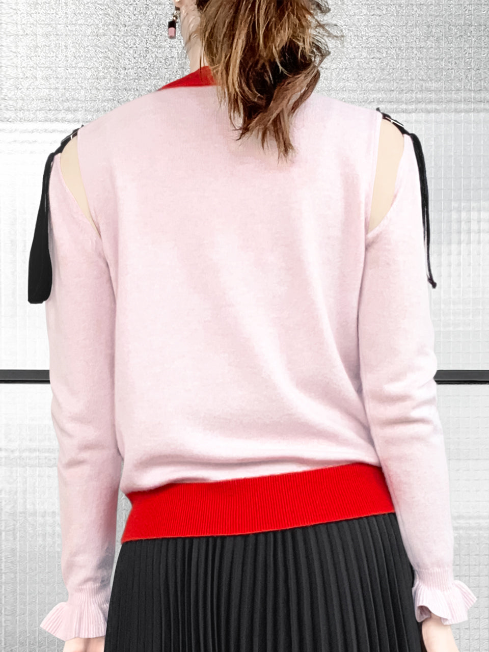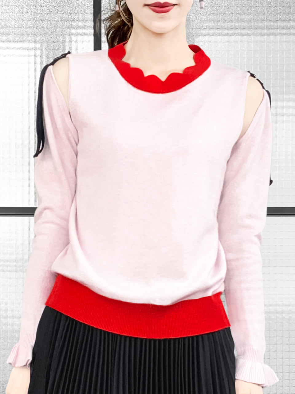 Surprise Sale! Pinky Colourblock Scallop Collar Cold-Shoulder Cashmere Blend Sweater
