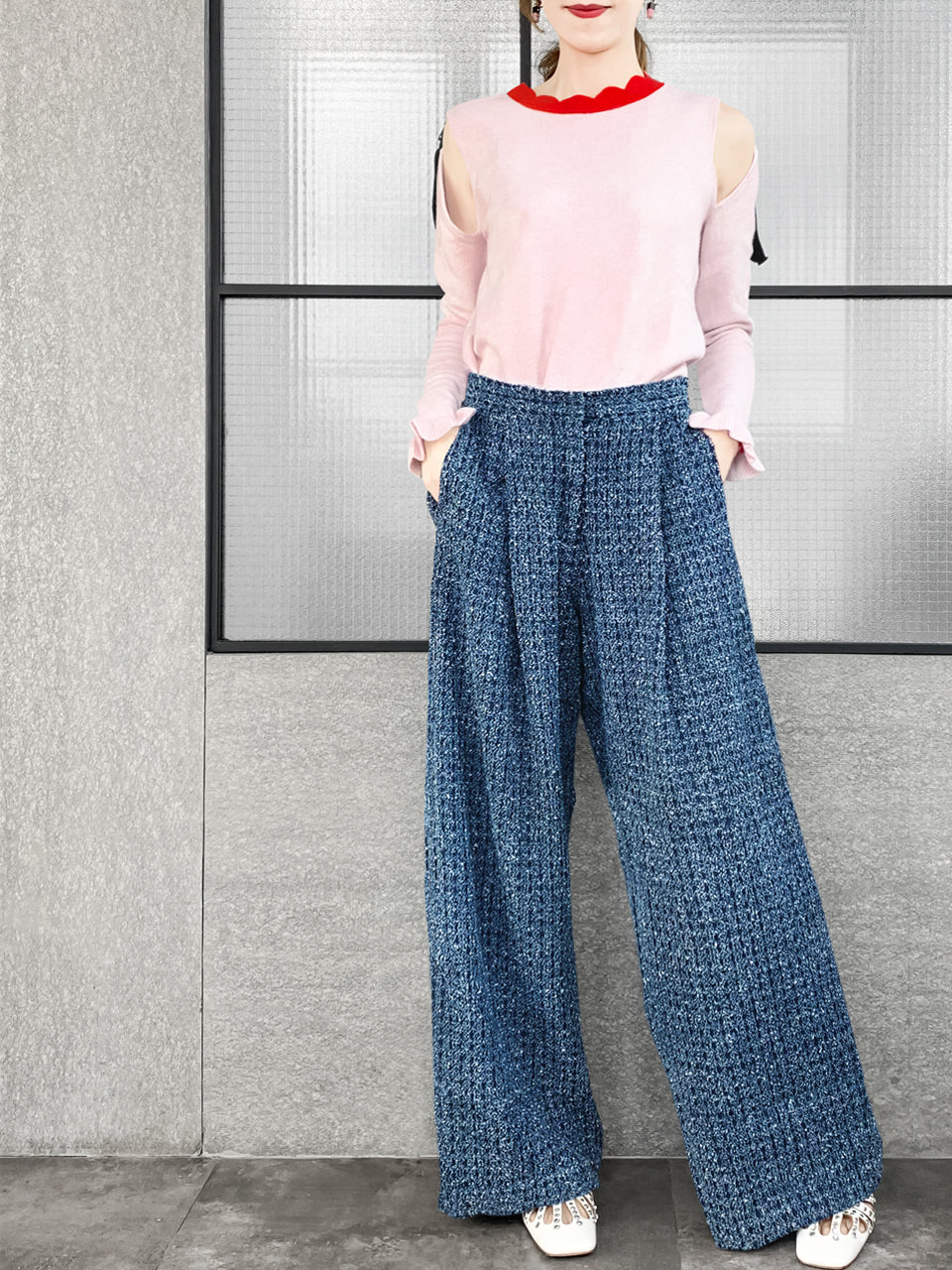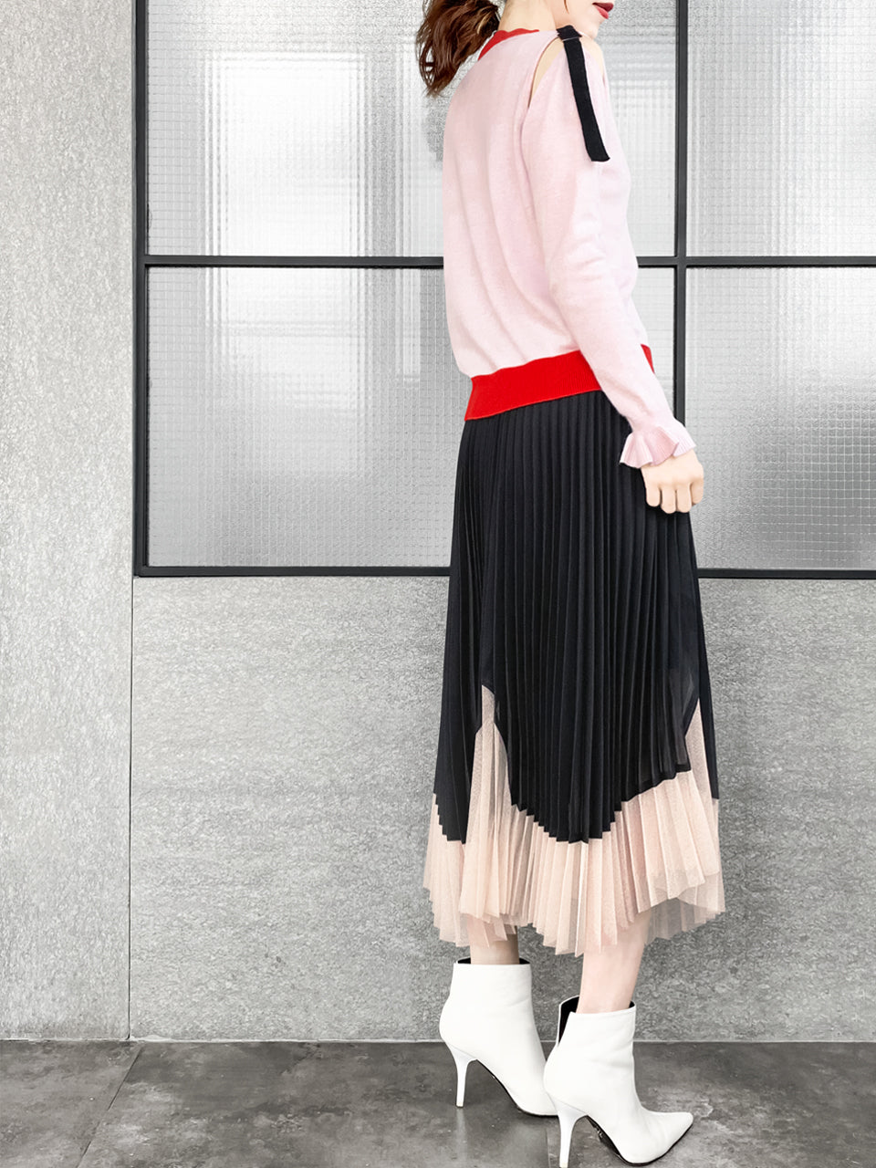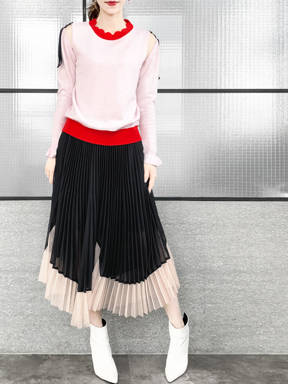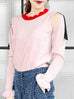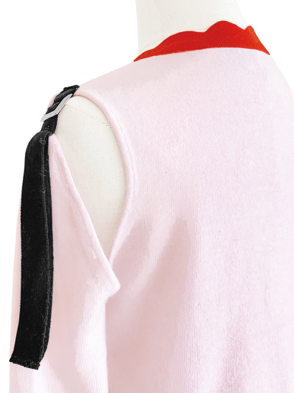 Surprise Sale! Pinky Colourblock Scallop Collar Cold-Shoulder Cashmere Blend Sweater