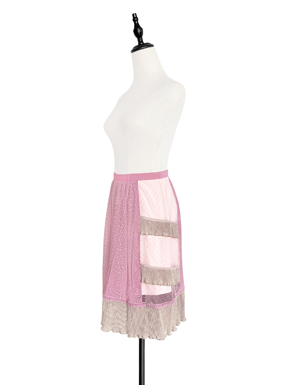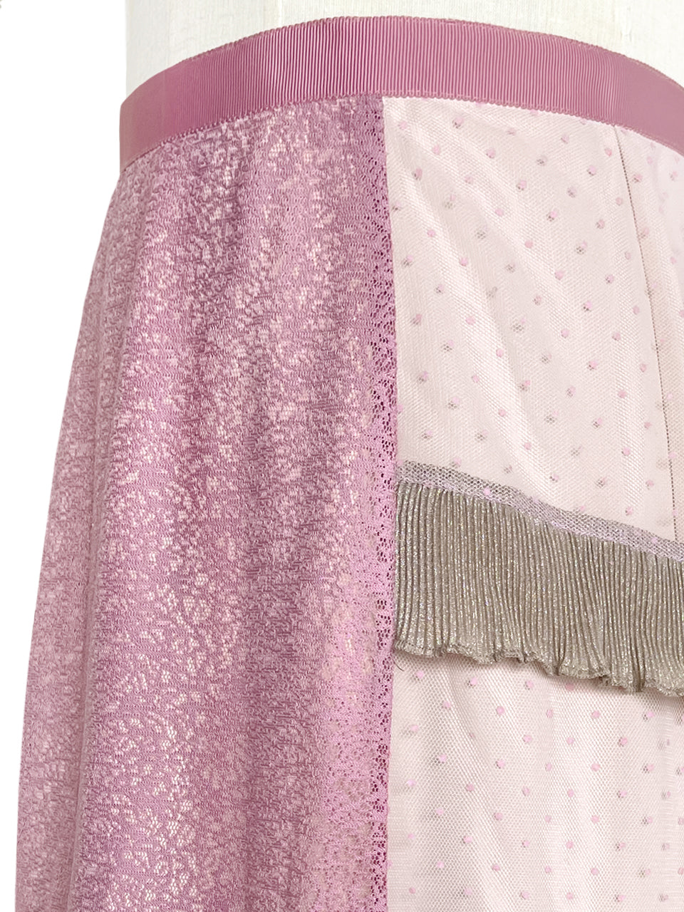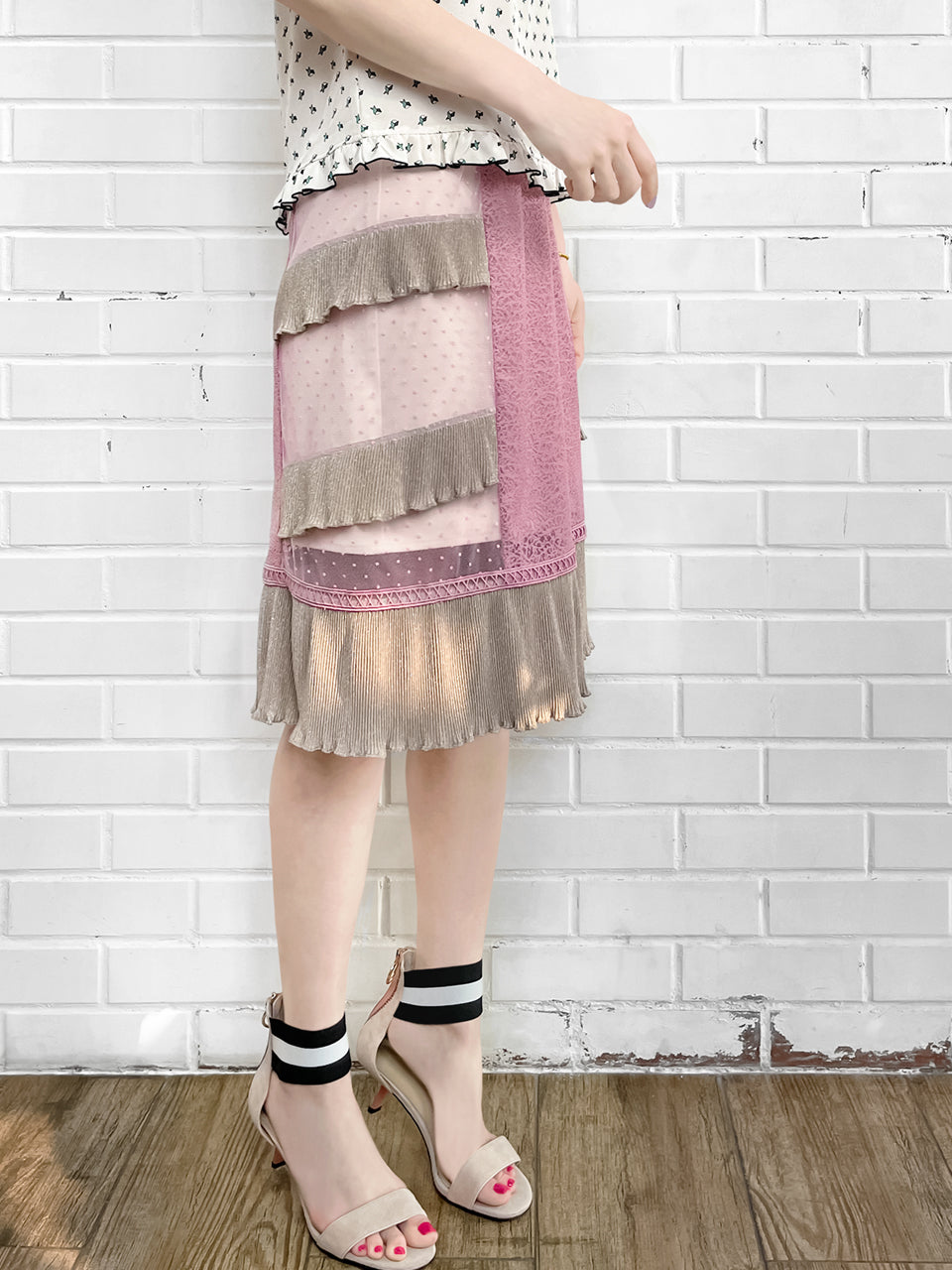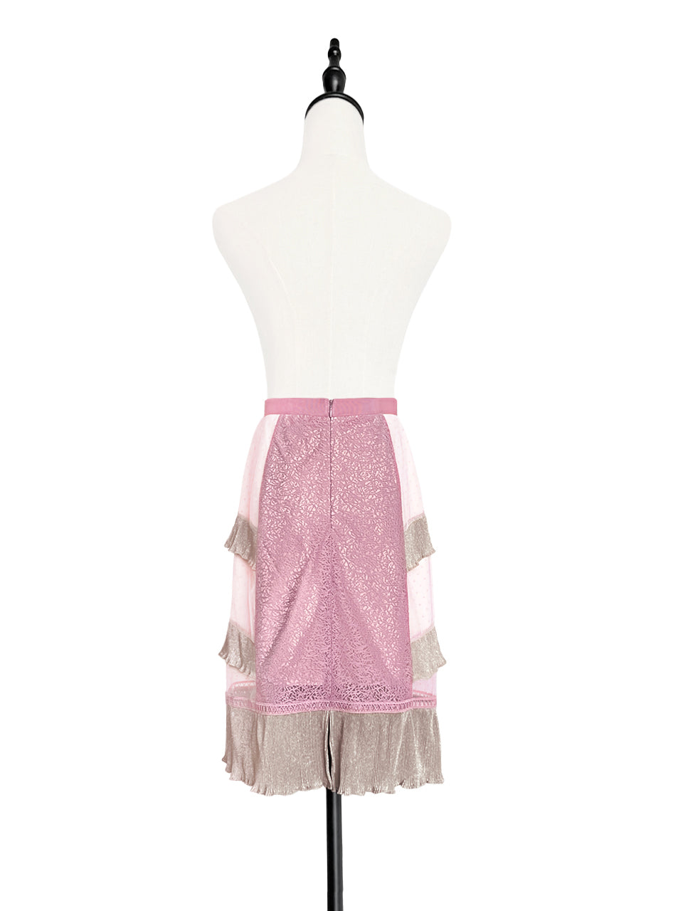 Surprise Sale! Pinky Sparkle Tiered Ruffle Dotty Trim Lace Skirt