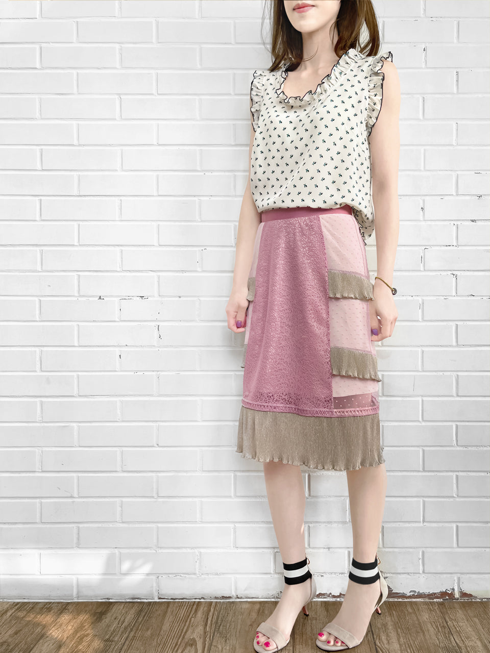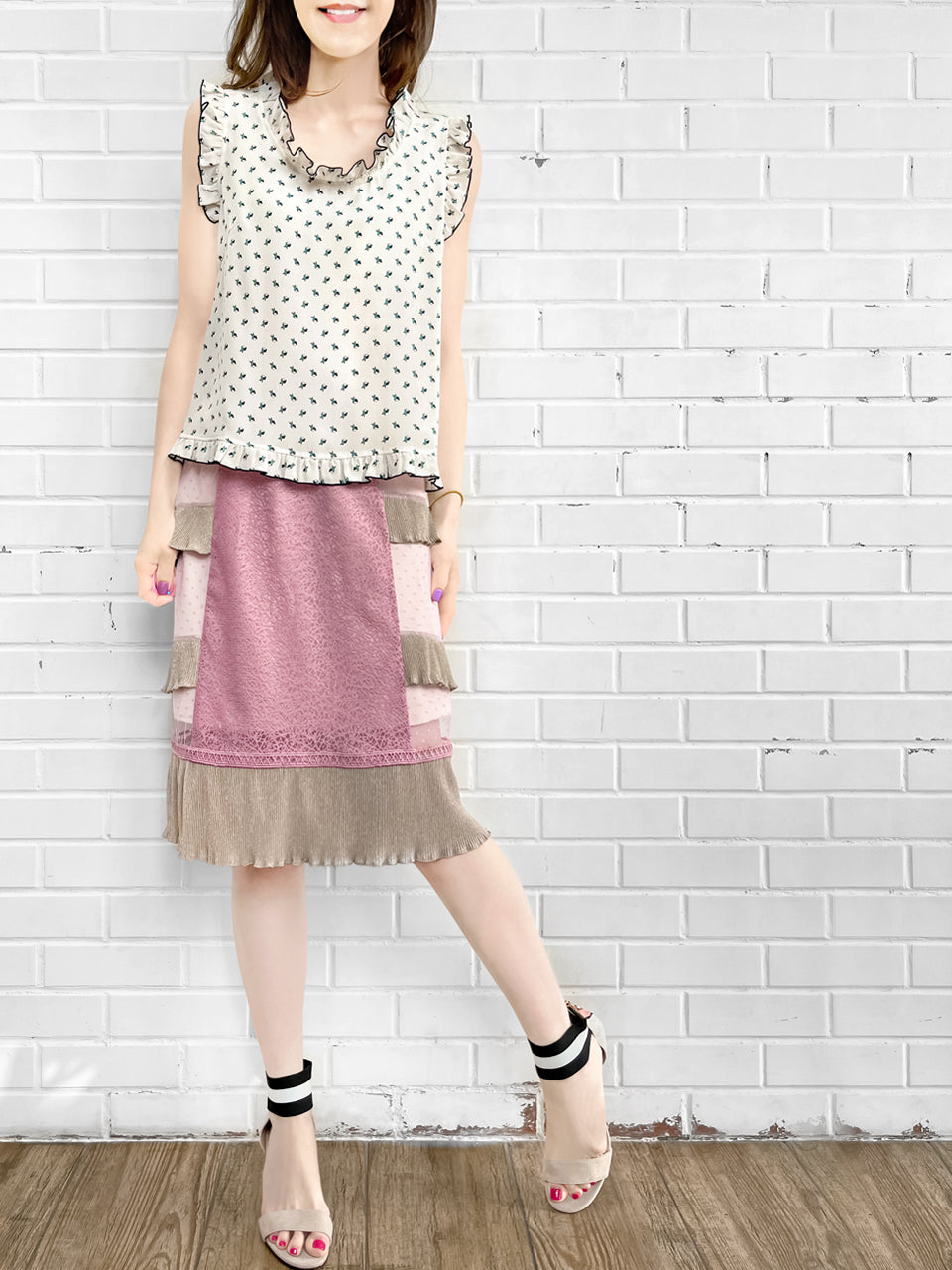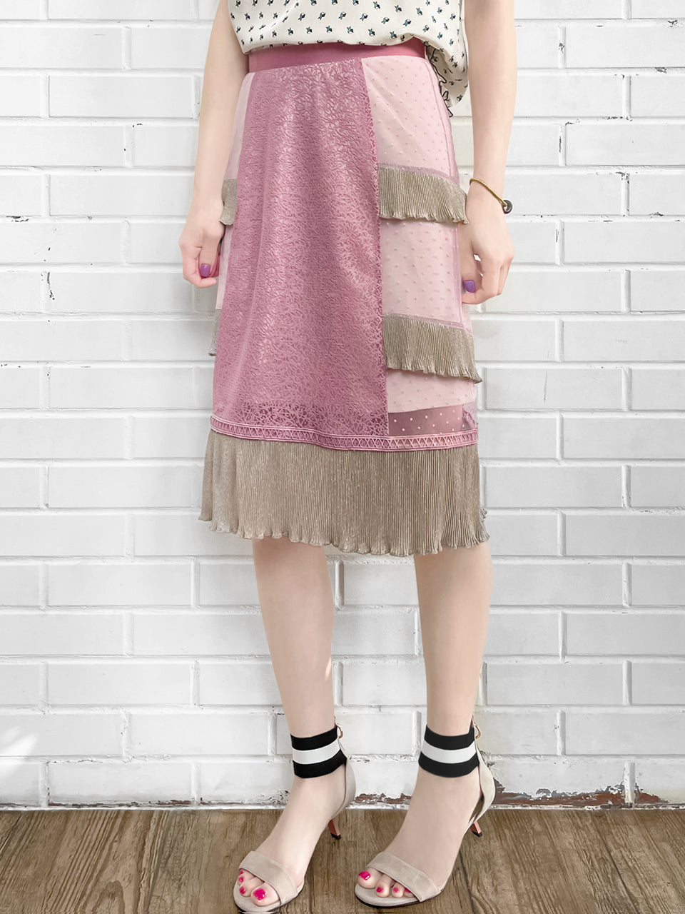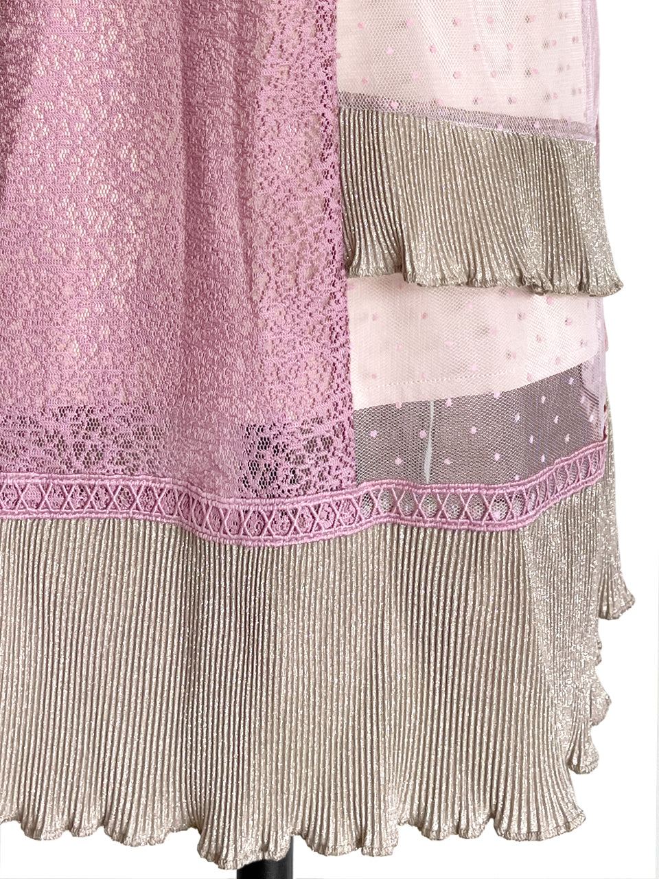 Surprise Sale! Pinky Sparkle Tiered Ruffle Dotty Trim Lace Skirt