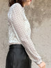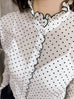 Polka Dot Contrast Scallop-Stitched Detail Airy Blouse