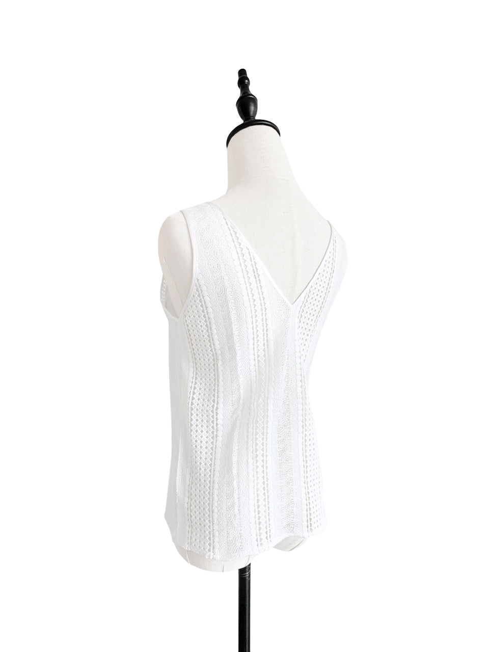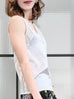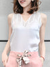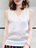 Last Chance! Pure White Embroidery Lace Back V-neck Silk Tank