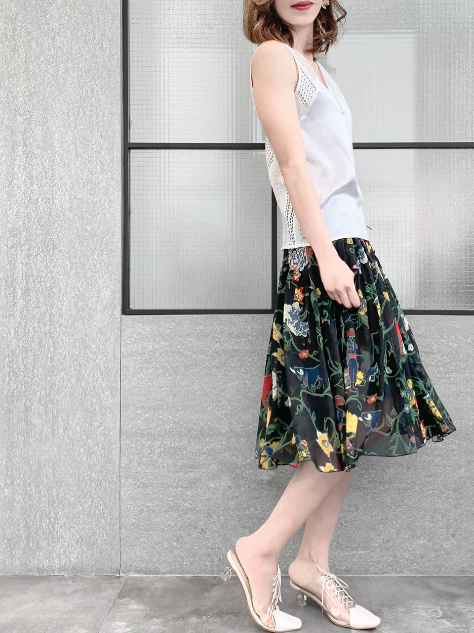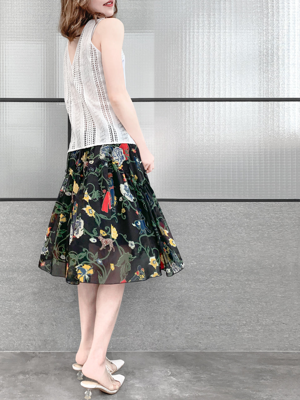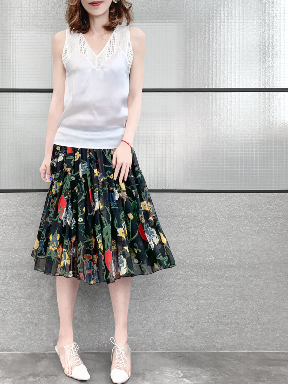 Luxuriate in this pure-silk tank comes through with extra elegance that thanks to a tender embroidery lacy trimming the V-neck and the back