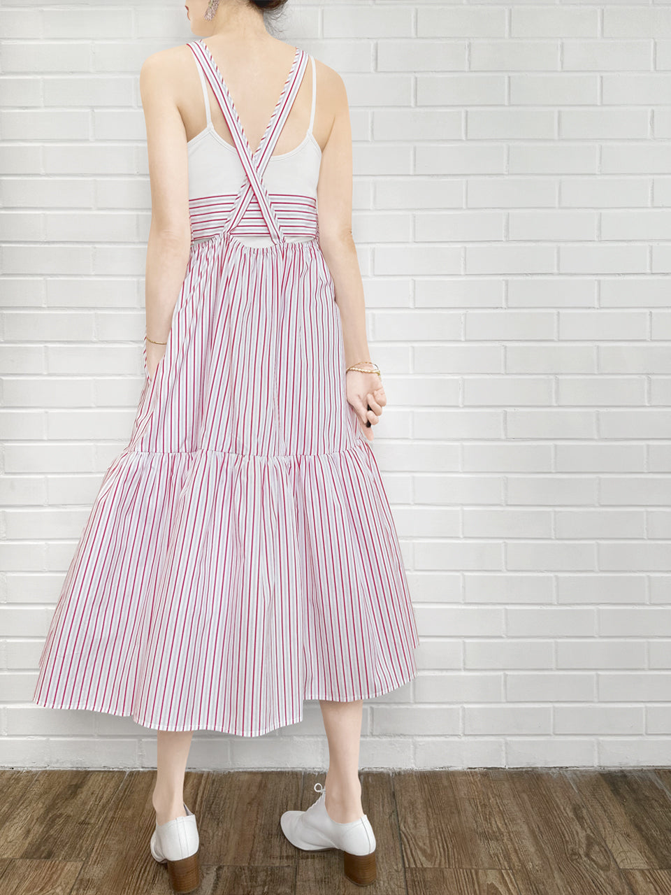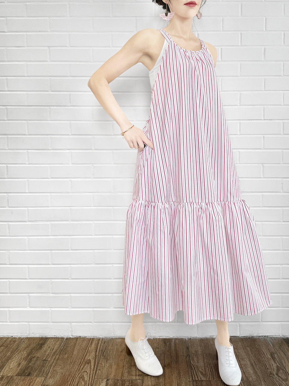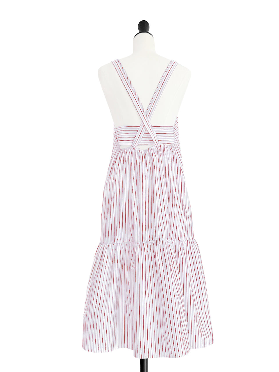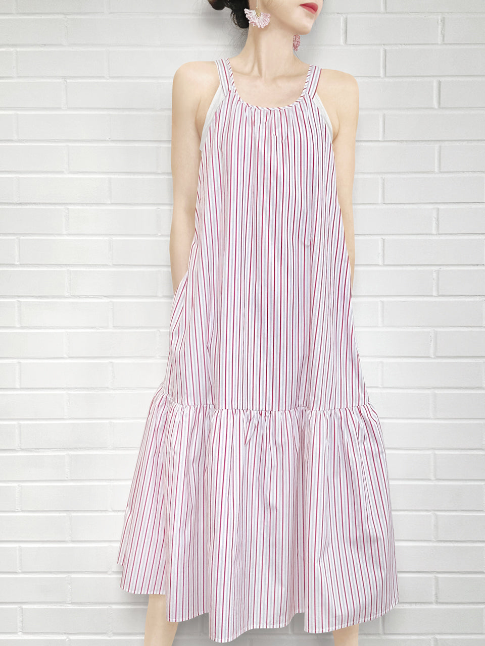 Surprise Sale! Red Striped Cotton Halter Neck Cross-back Maxi Dress