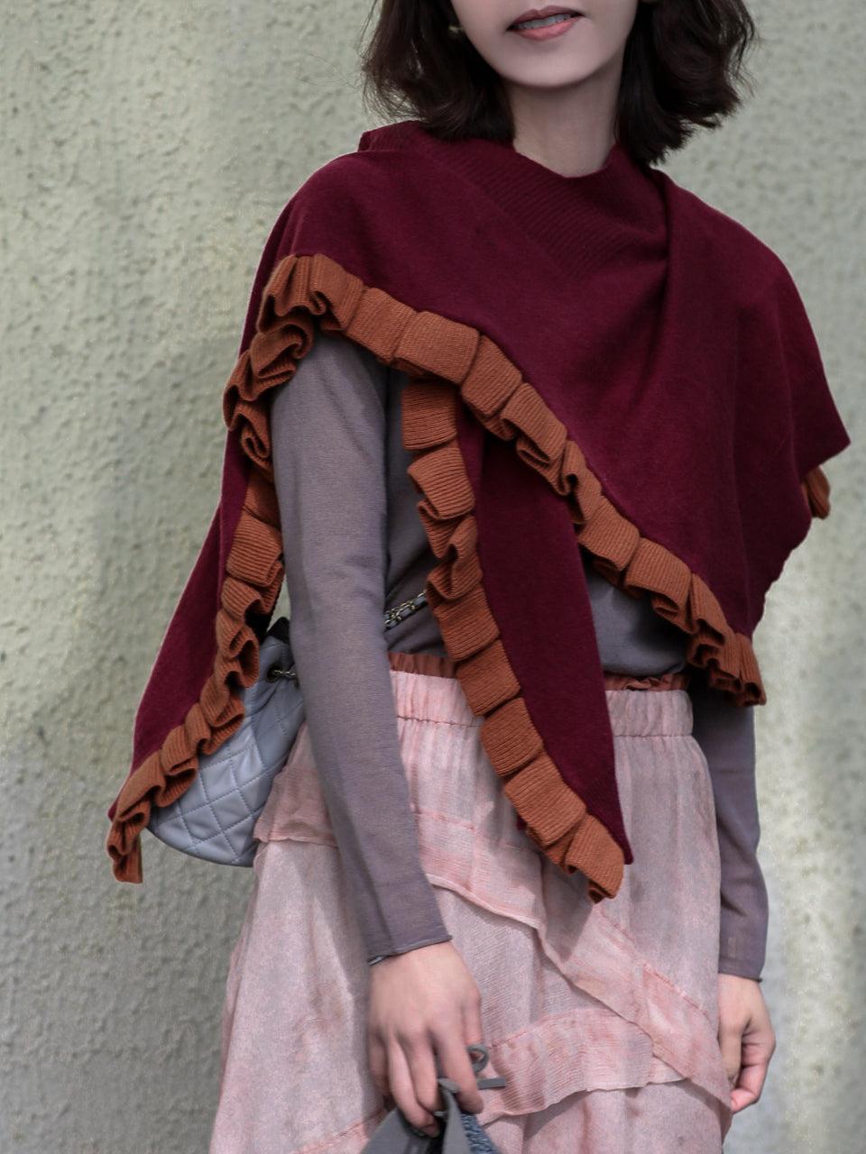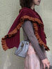 Rudy Red Pleated Frills Wool & Cashmere Ruana - Scarf